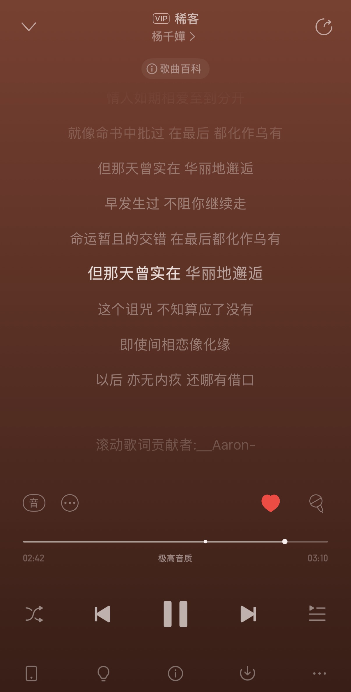 好久没有做专门的粤语歌单,虽然基本上每一期的节目都有粤语歌。作为一个北方人是什么时候喜欢上粤语歌的呢?小的时候零零散散听过像《光辉岁月》《红日》《好心分手》等等这种家喻户晓的热门歌曲,确切来讲应该是22年的时候先开始听了很多陈奕迅的粤语歌,连带着听一些热门的粤语歌。后面有机会看了陈的第一场演唱会,对他的一些所谓的冷门歌曲喜爱有加,还看了杨千嬅,现场被深深圈粉!这期间也不断在听其他歌手的粤语歌虽然不是很多。再后来越来越喜欢粤语歌,尤其是喜欢粤语歌的歌词,总是那么恰到好处的描述出个人感受,我也在听歌的时候产生共鸣沉浸在歌里。因为一些原因很喜欢广东,也很羡慕广东人会讲粤语能吃到好吃的早茶粤菜等等,之前还开玩笑说下辈子希望做个广东人,因为这辈子是没有机会了hhh。今年的心愿是再看一次杨千嬅的演唱会,希望我的老idol陈奕迅也快快开始巡演吧~~