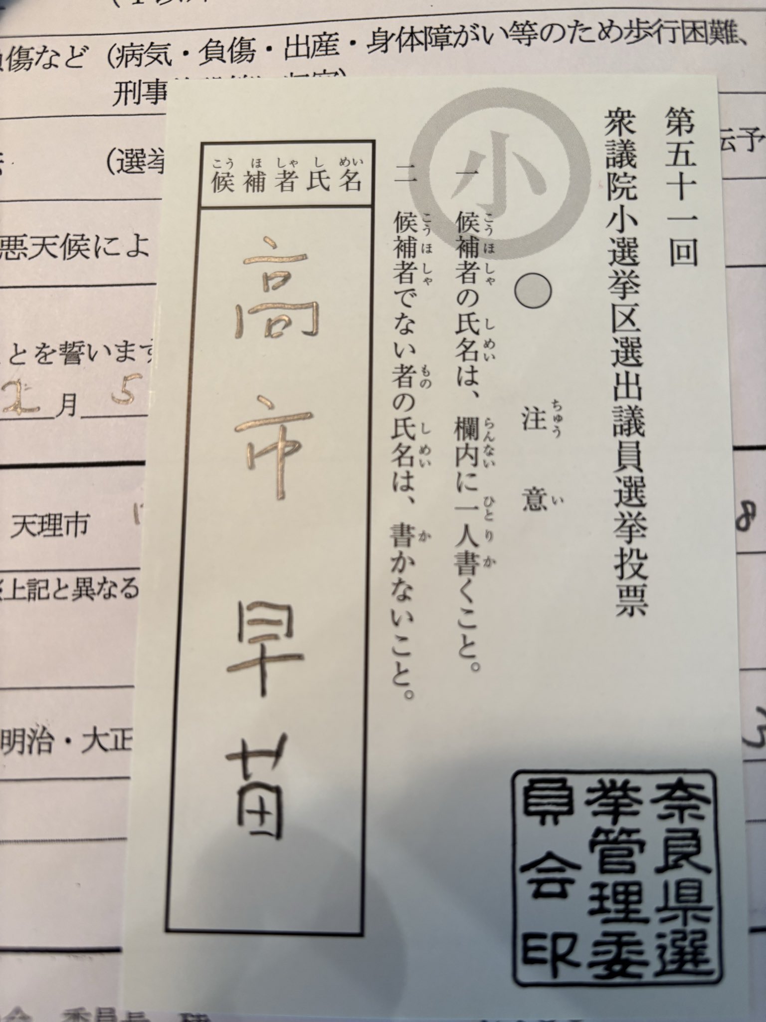 小:小选区,手写候选人名。得票最高者当选。
