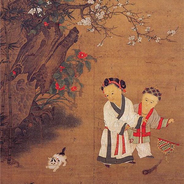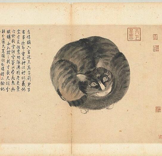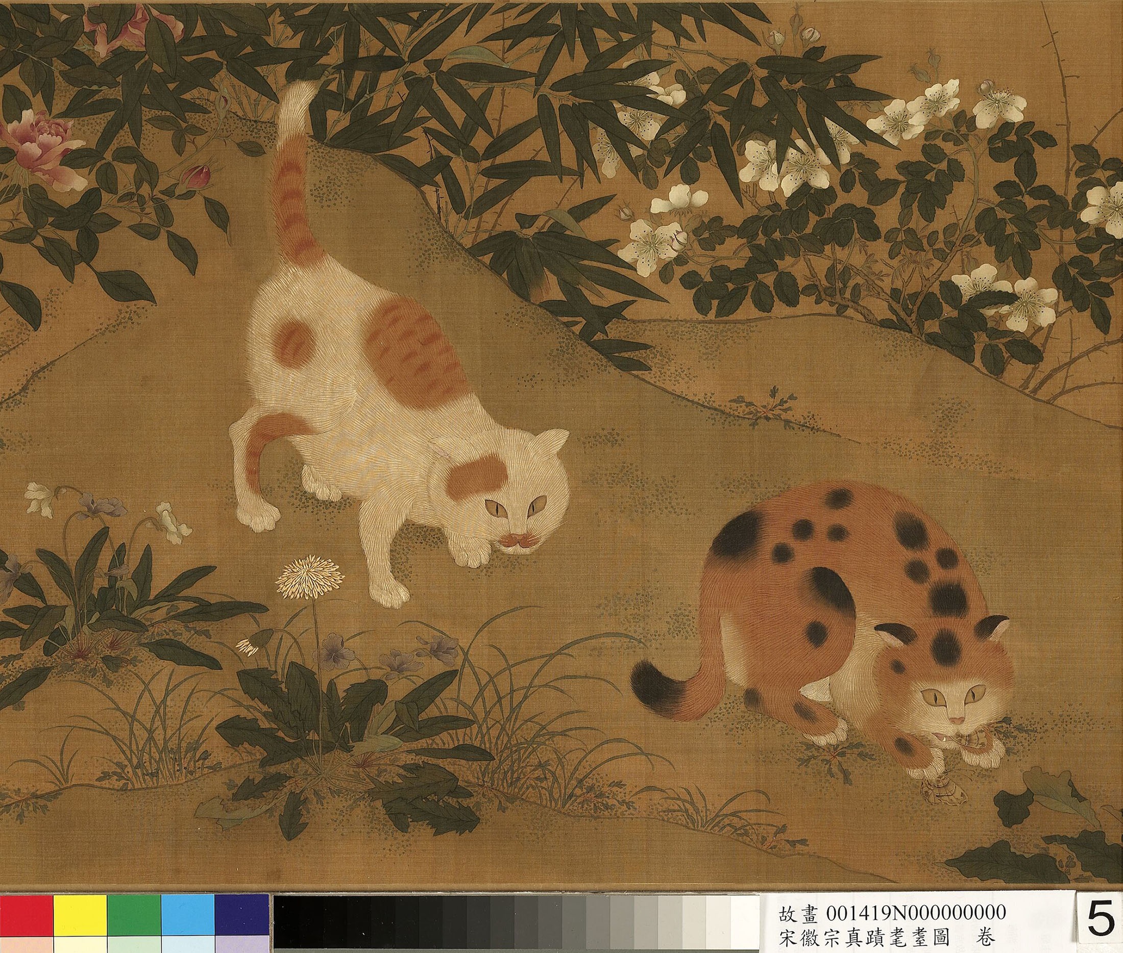 宋徽宗的《猫蝶图》、《乳猫图》——文征明、《写生册—猫》——沈周、朱瞻基的《花下狸奴图轴》、《五狸奴图》、《唐苑嬉春图》、虚谷《猫蝶图》