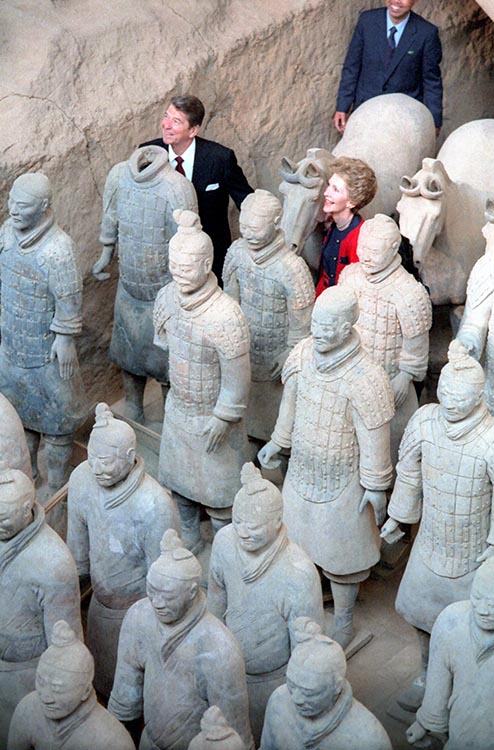 ▲ 里根来华访问,与秦兵马俑的合影