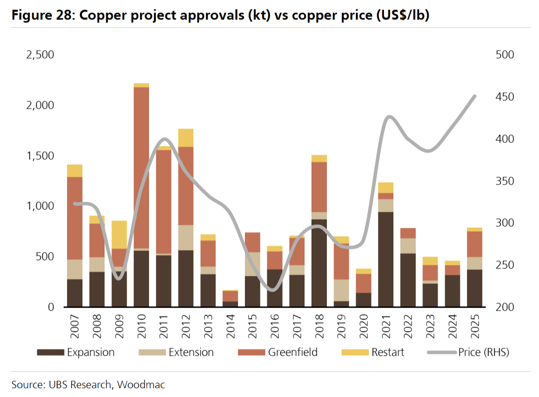 更关键的是,新矿项目审批低迷,2022-2024年新增审批量远低于历史水平,即使2025年略有回升至800千吨,仍难以填补供需缺口(图28,研报P16)。