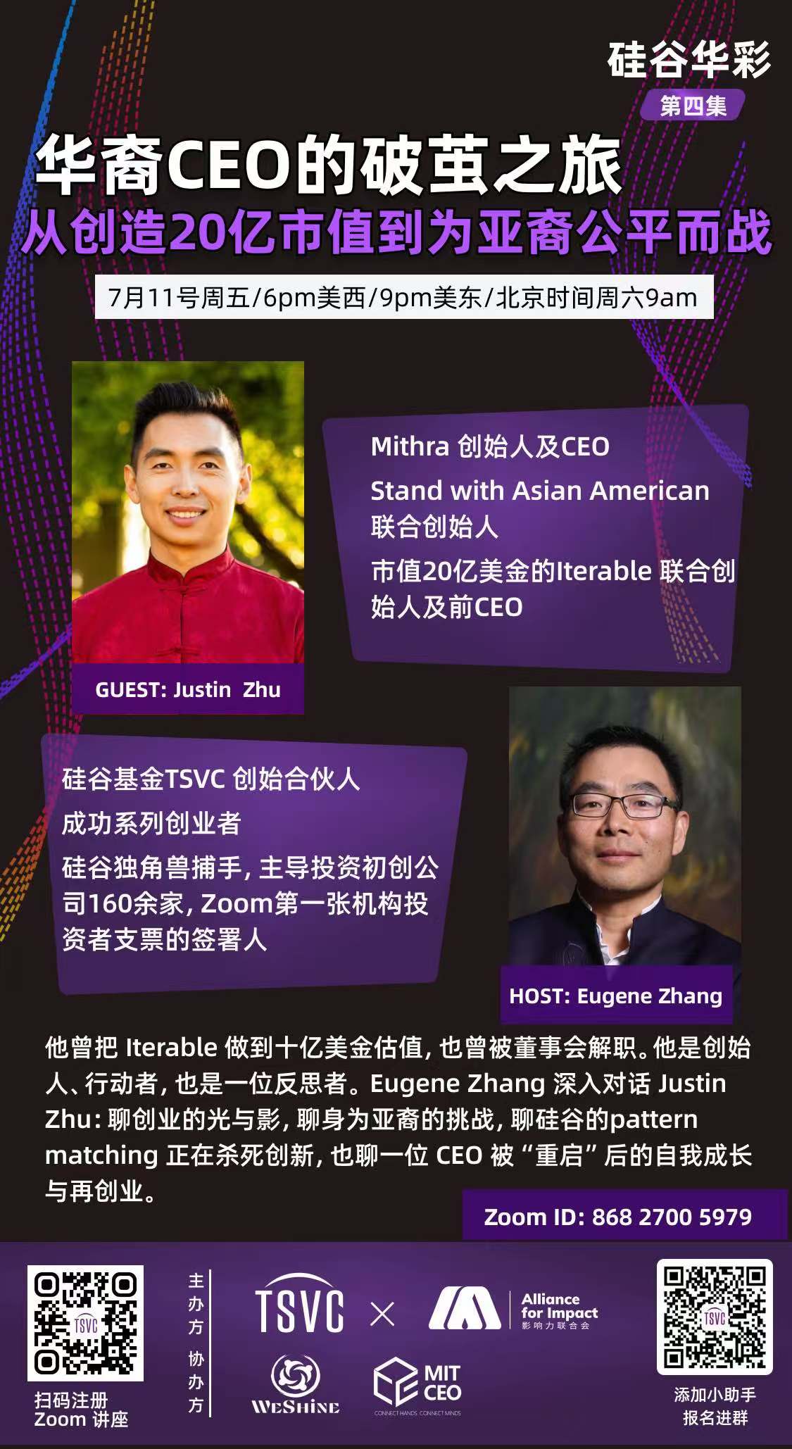 7月12日,TSVC举办了“硅谷华彩”系列第四期活动。他曾把 Iterable 做到十亿美金估值,也曾被董事会解职。他是创始人、行动者,也是一位反思者。本次对谈,Eugene Zhang 深入对话 Justin Zhu:聊创业的光与影,聊身为亚裔的挑战,聊硅谷的pattern matching 正在杀死创新,也聊一位 CEO 被“重启”后的自我成长与再创业。