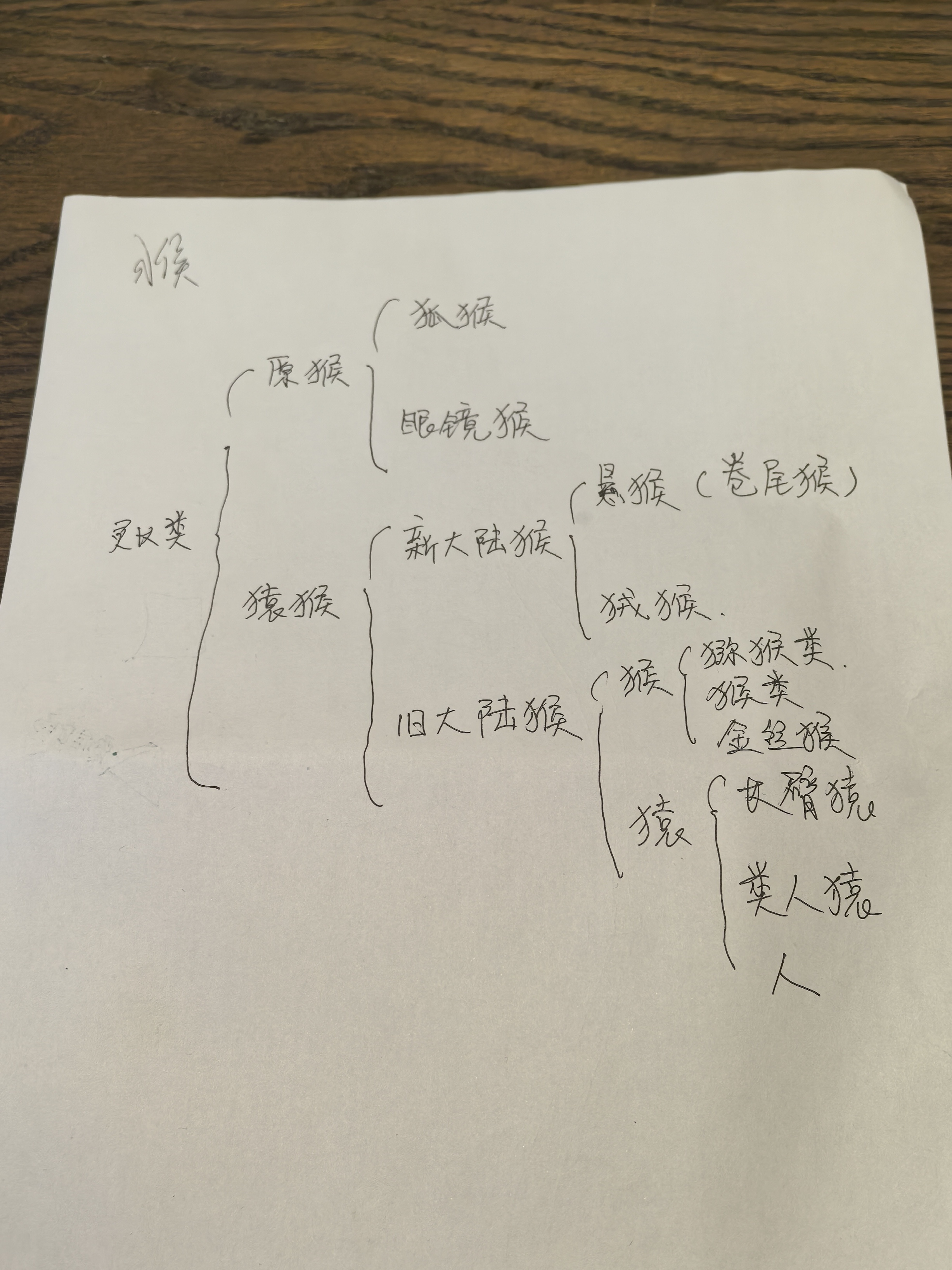 二宝哥手写的猴分类图
