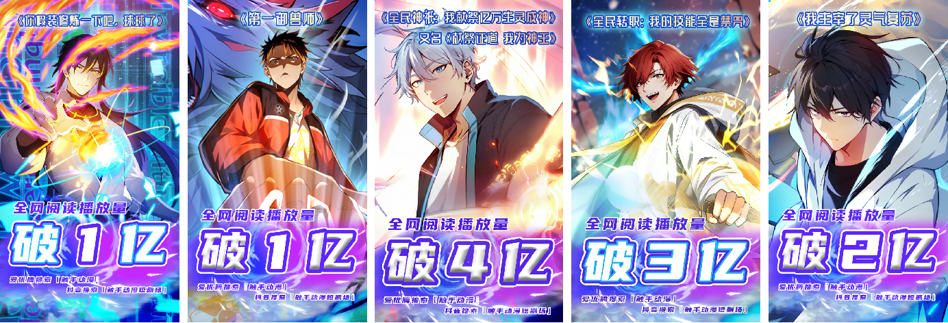 2025年,“漫剧”已经成为抖音、腾讯等大厂重点布局的新内容方向之一。水母智能出品的《全民转职:我的技能全是禁咒》等5部作品在抖音的播放量均实现破亿。