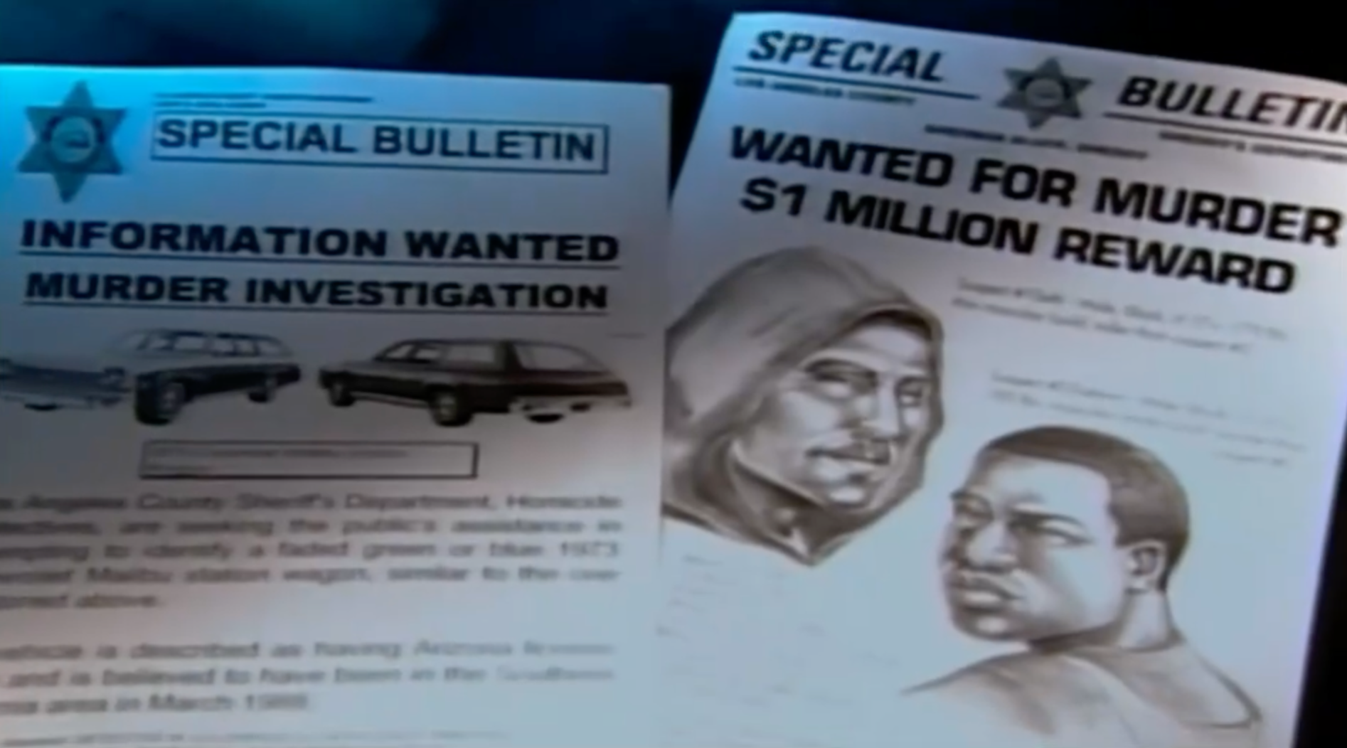 住在Mickey家后面的Johnson博士案发时的确听到了声音,那会儿他刚起床准备洗漱就听到一连串枪响,紧接着枪声戛然而止,过了可能有10秒15秒的样子,他就听到Mickey Thompson在大喊:别伤害我太太!这句话刚喊完,就又传来一串枪响,之后就彻底安静了,可以说是死一般的安静。这时候Johnson博士从自家厨房的窗户看出去刚好看到有两个年轻的黑人骑着山地车从门口那条路上一闪而过。速度之快很显然是在逃跑。他当时立即拿起电话报警,巡警在几分钟后就赶到现场,但是当时Mickey和Trudy已经当场咽气了。