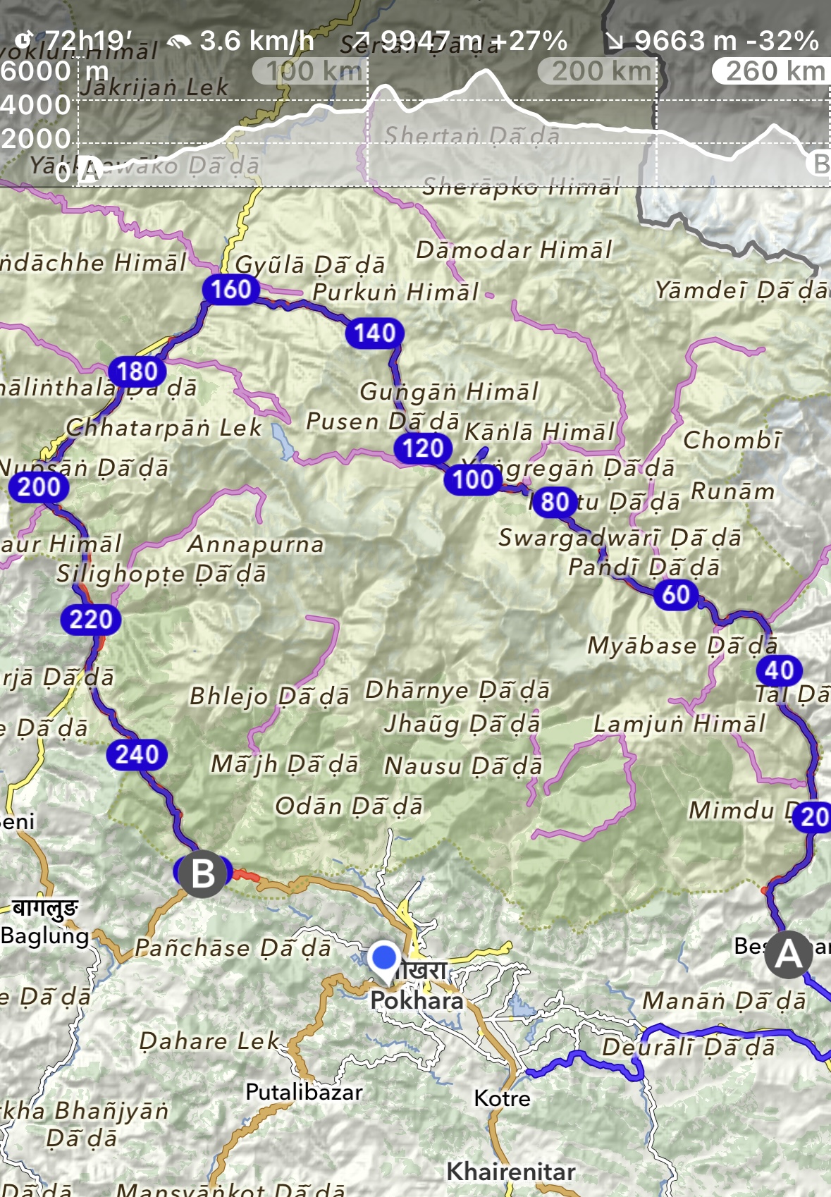 第十天 从Shikha 到Nayapul 27.6公里 用时7小时53分 爬升1036米 下降1936米
