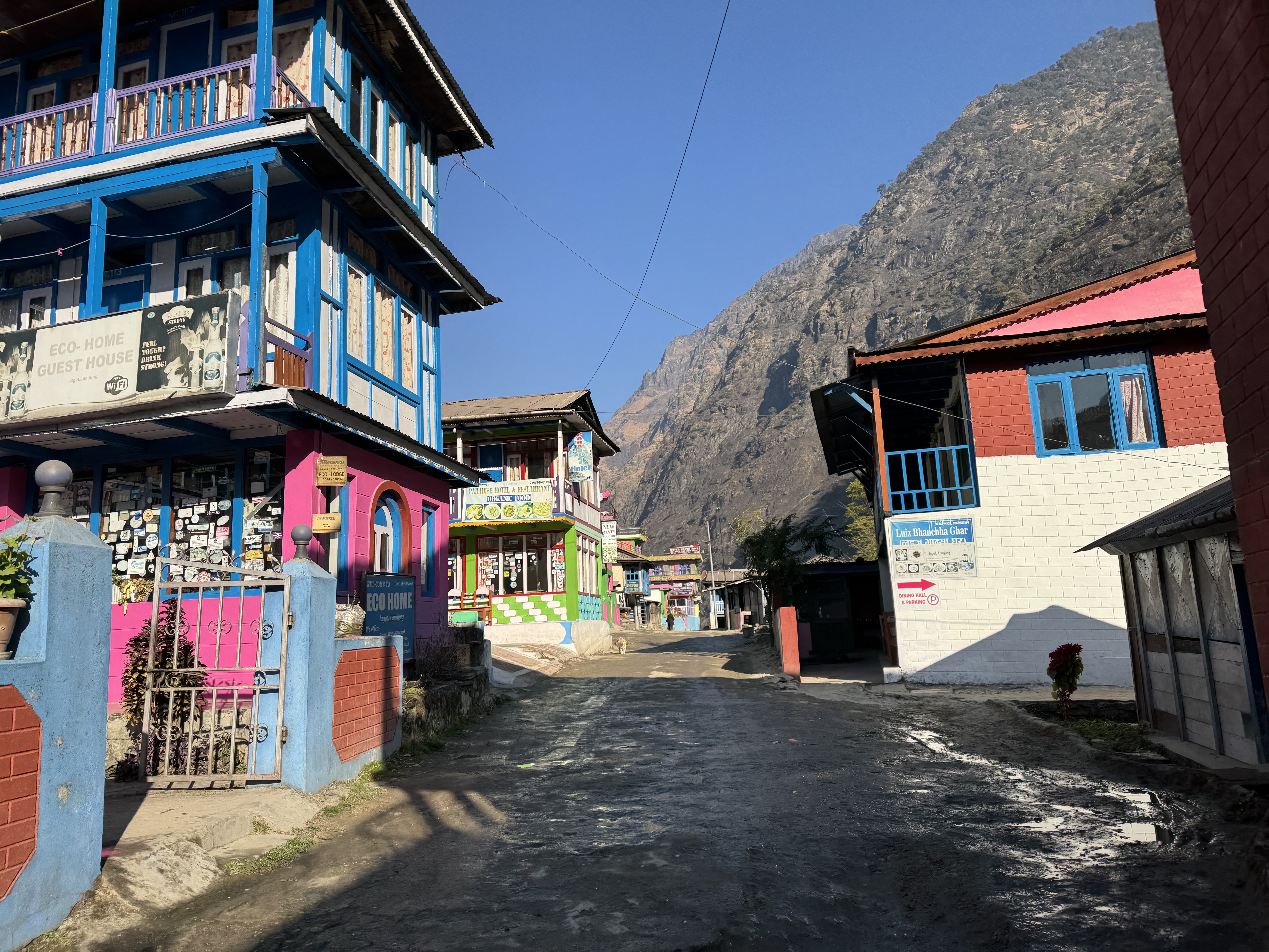 第一天 6:30起床;7:30 从博卡拉坐中巴车到Besisahar开始徒步到Syange 24.7公里 用时5小时34分 爬升712米 下降 394米