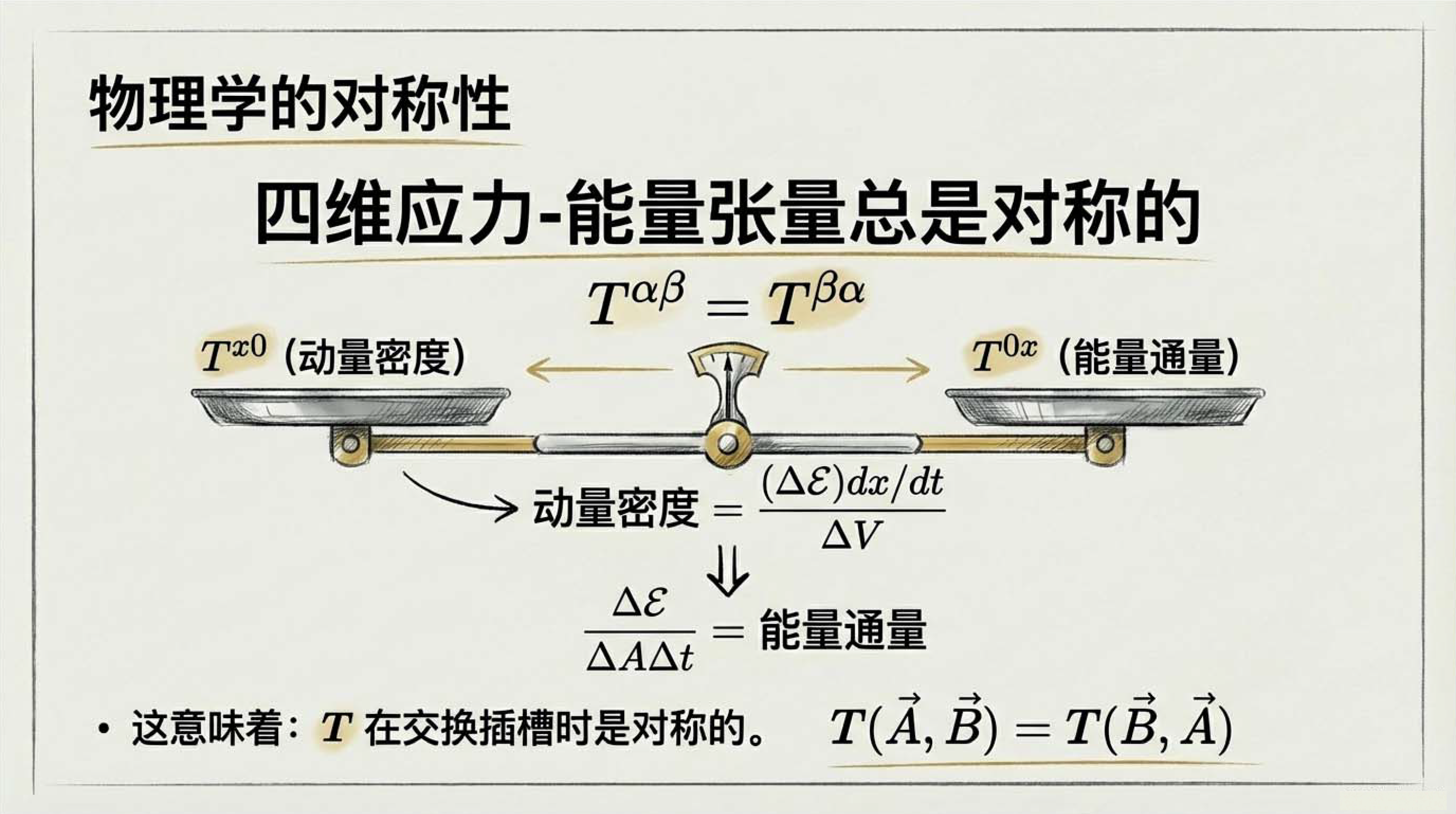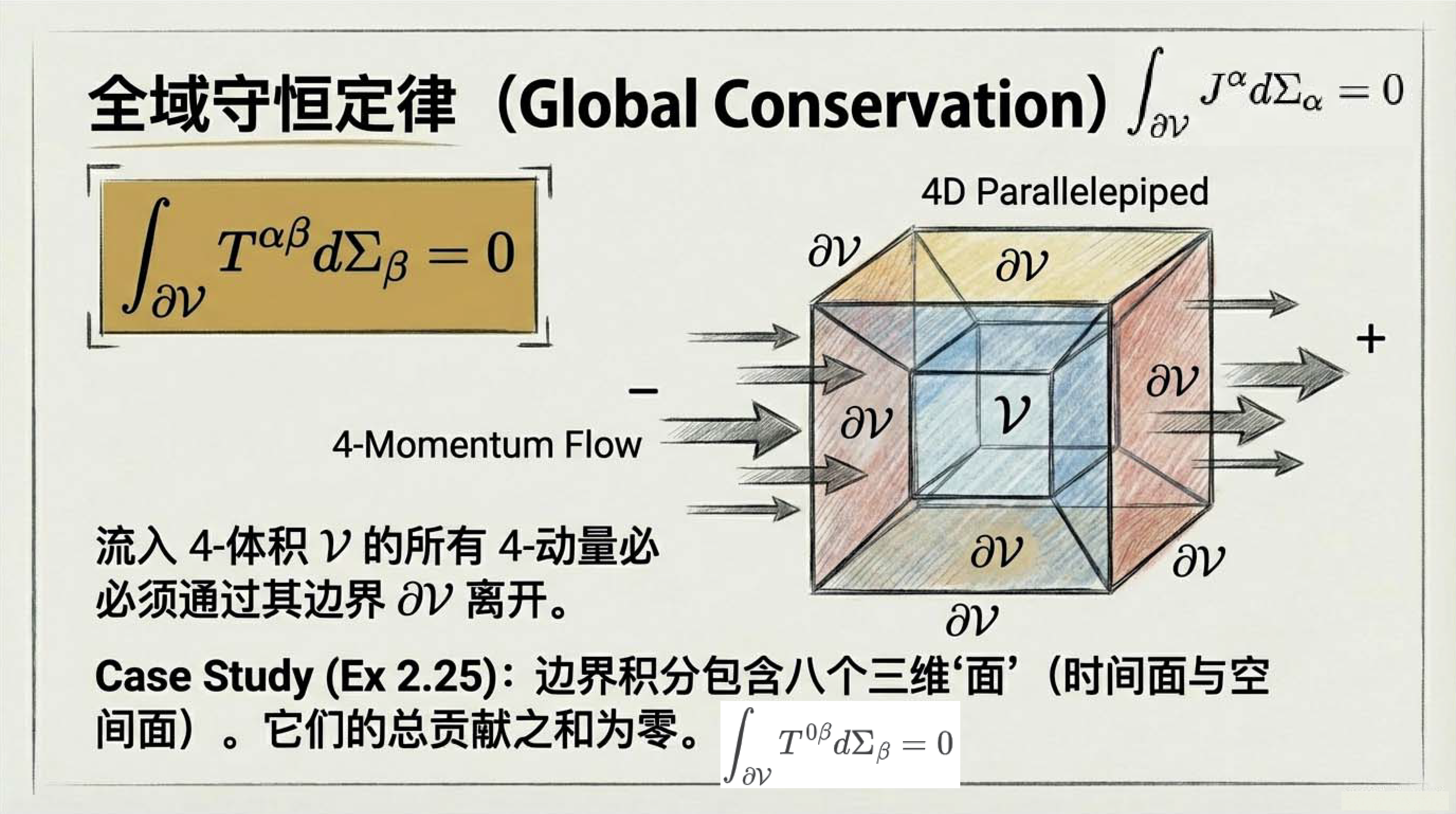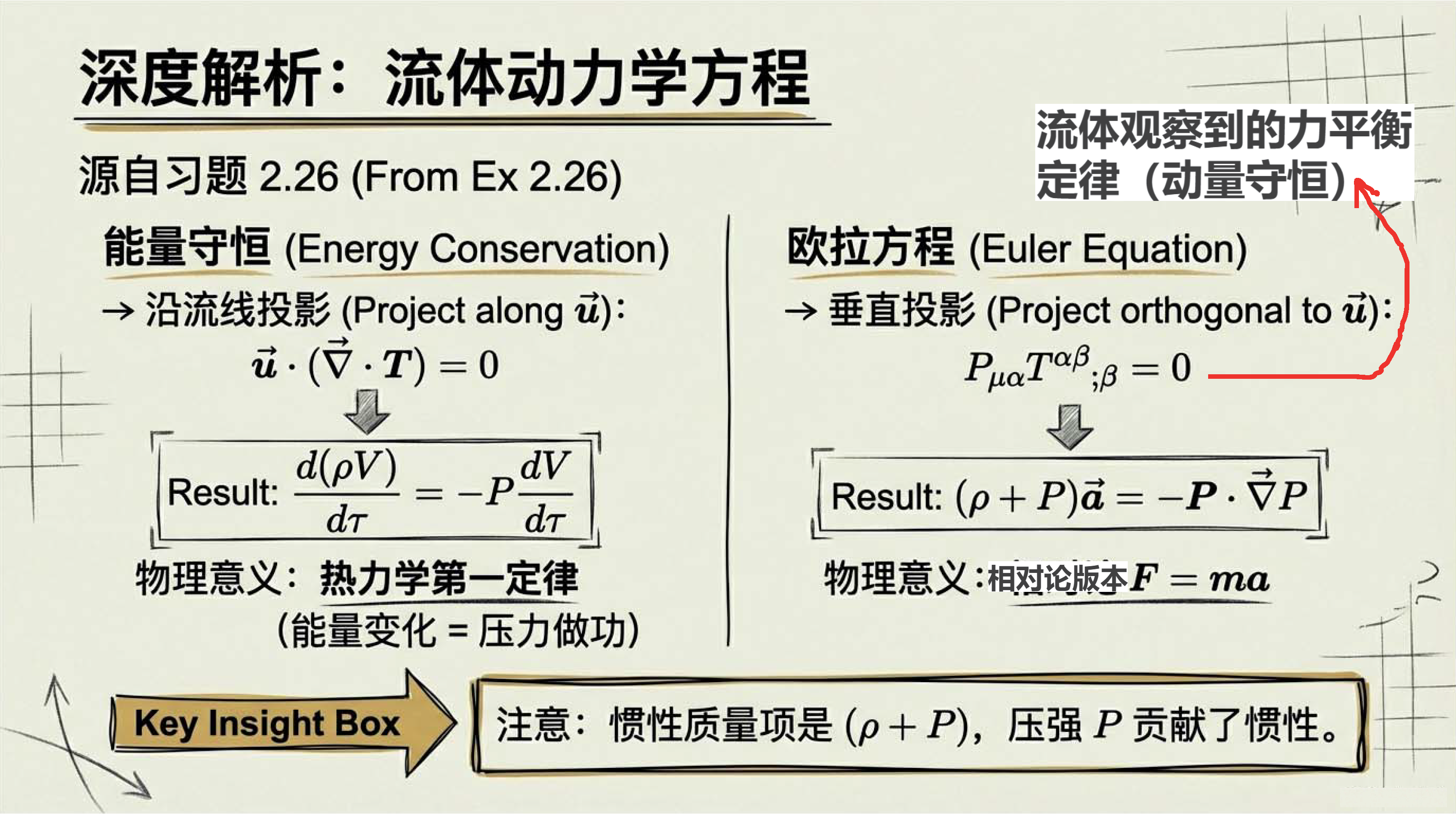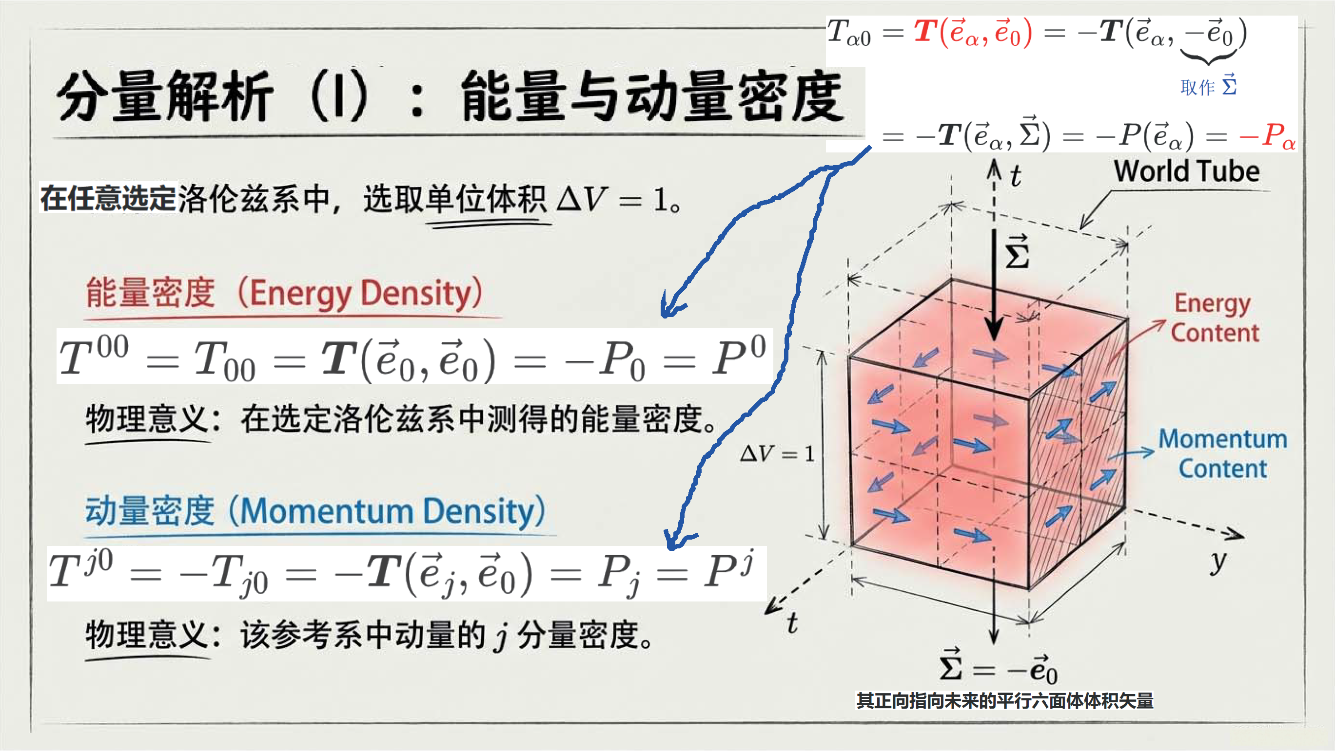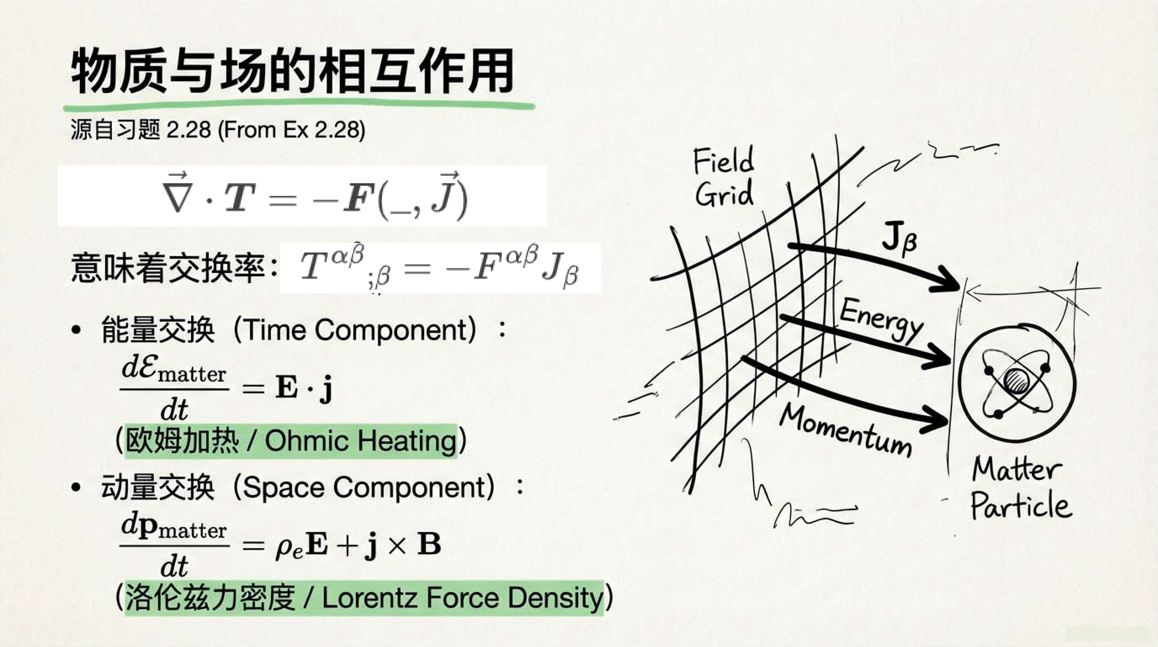 本课引入了应力-能量张量来表述4-动量守恒,它是牛顿应力张量在时空中的几何推广。其分量涵盖了能量动量的密度与通量,且因物理自洽性而具有对称性。利用高斯定理,全域守恒律可转化为局部形式。课程还分析了理想流体与电磁场的张量模型,为研究相对论动力学奠定了基础。