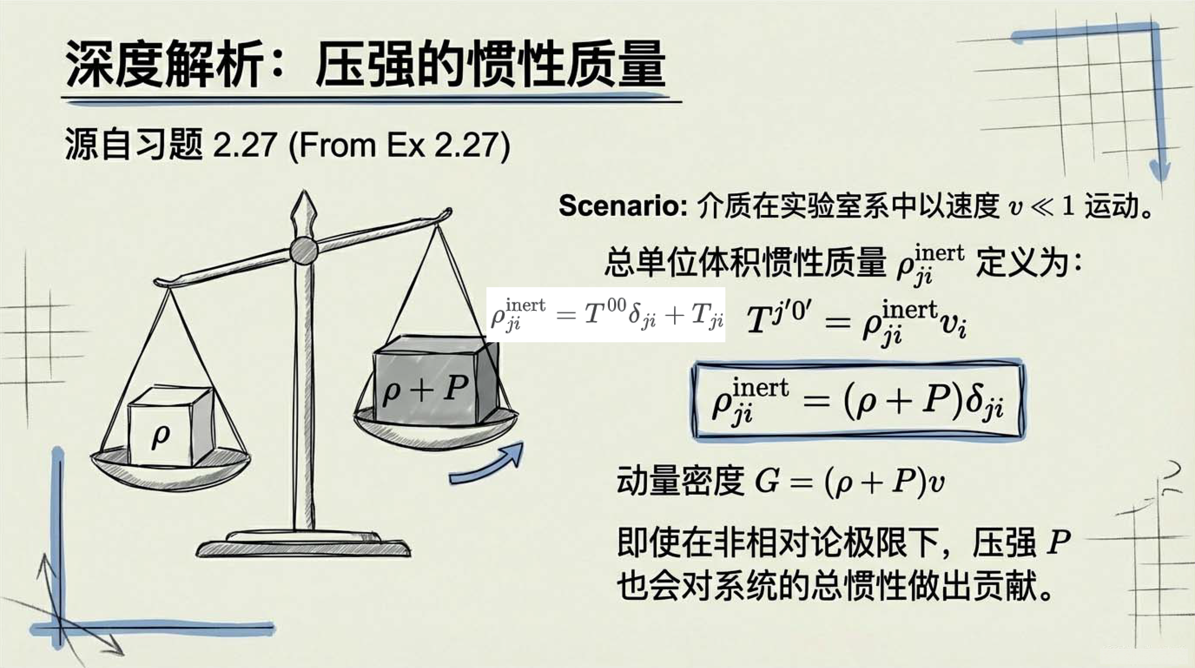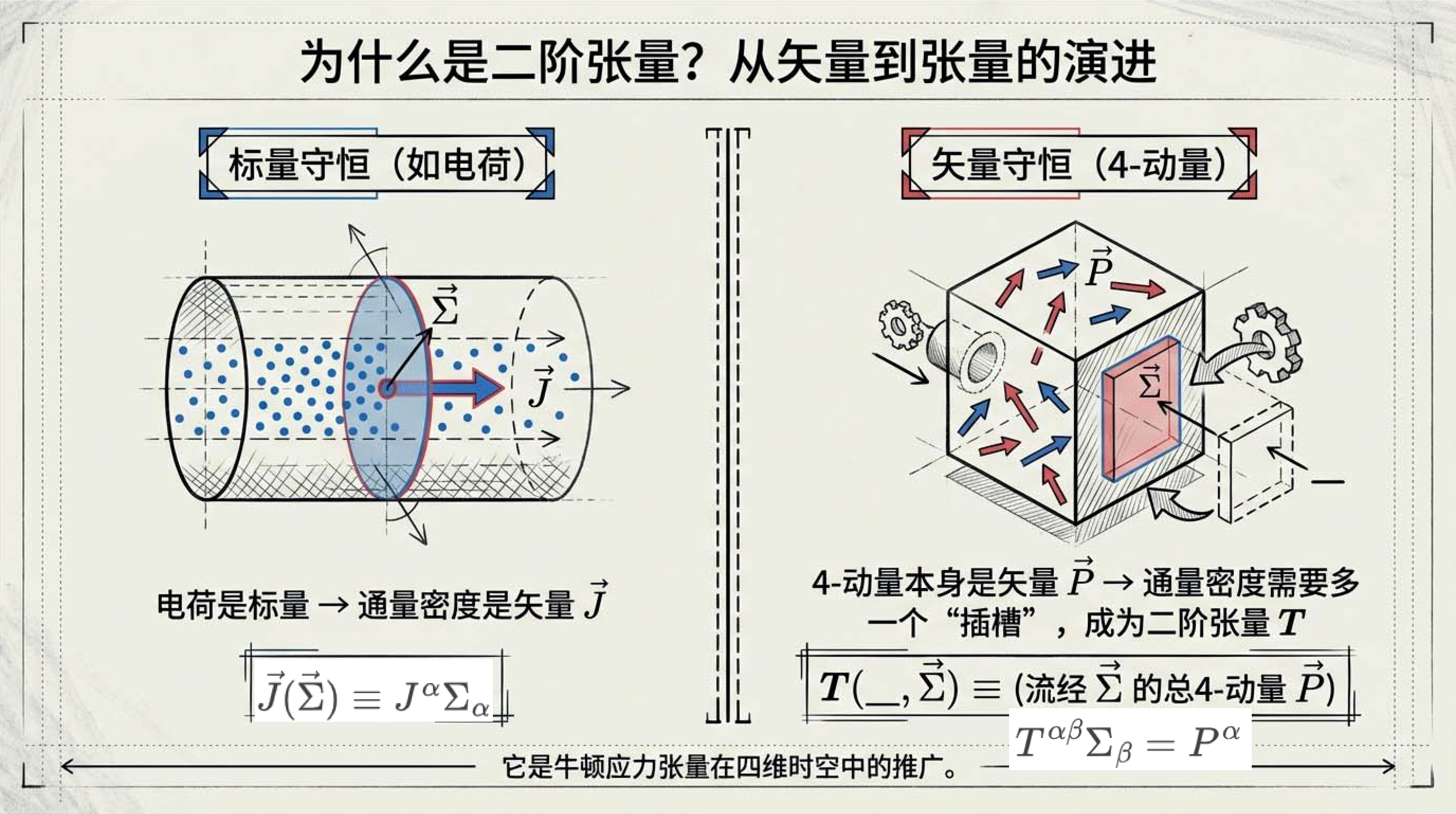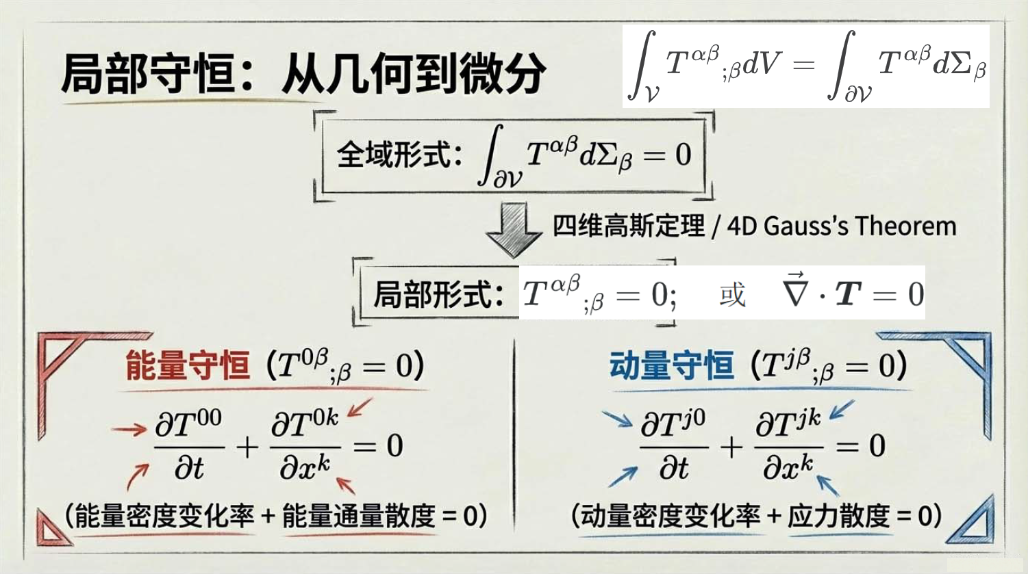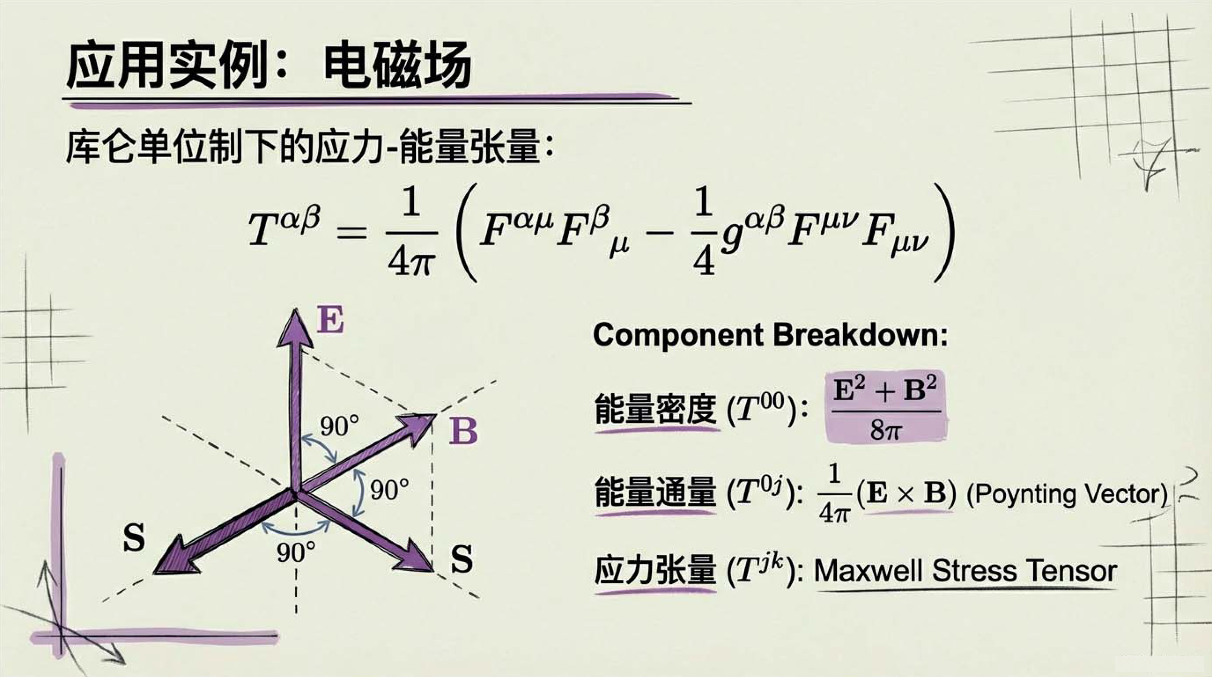 本课引入了应力-能量张量来表述4-动量守恒,它是牛顿应力张量在时空中的几何推广。其分量涵盖了能量动量的密度与通量,且因物理自洽性而具有对称性。利用高斯定理,全域守恒律可转化为局部形式。课程还分析了理想流体与电磁场的张量模型,为研究相对论动力学奠定了基础。