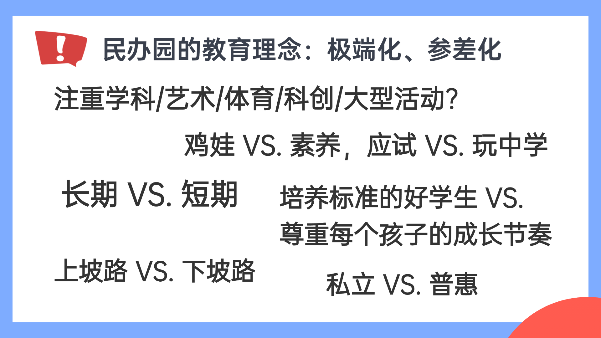 还在纠结幼儿园选公办还是民办的家长,建议从开头教育理念部分开始听:教育目标和理念决定了择校方向。