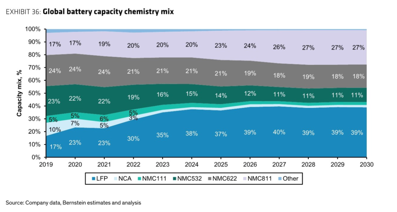 图表3(EXHIBIT 36:全球电池化学体系占比变化) 显示技术趋势:2025-28年高镍NMC811产能CAGR达29%,LFP达24%。2030年NMC811占比升至27%,LFP稳定在40%,前者适配高端EV,后者主导储能与大众市场,韩国厂商也开始量产LFP适配美国ESS需求。