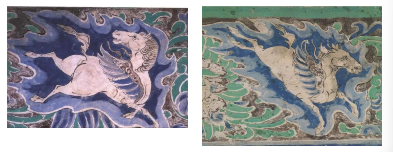 ▲ 榆林窟第 10 窟的两幅双翅翼马纹样