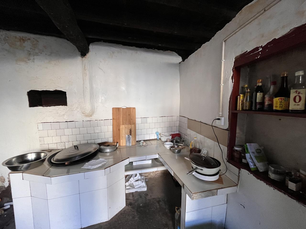 厨房的老式灶台和电磁炉