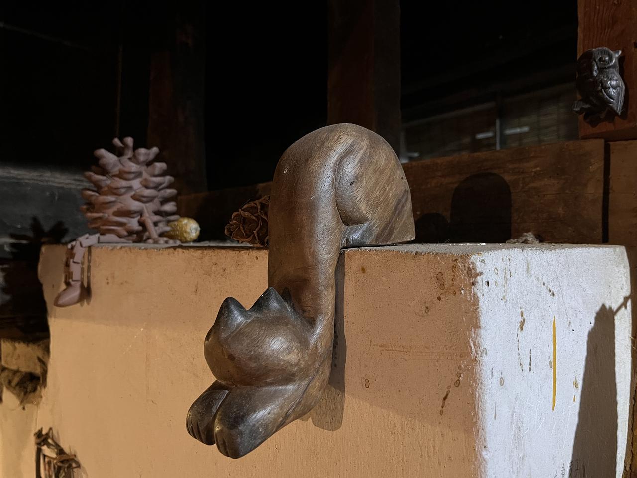 墙边放着奇奇外出旅行带回来的动物摆件