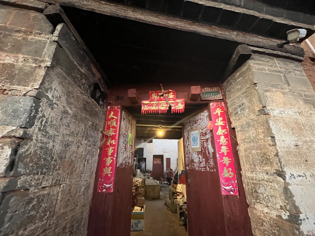 奇奇家的大门上贴着甲马,门檐正中央钉着一把短剑