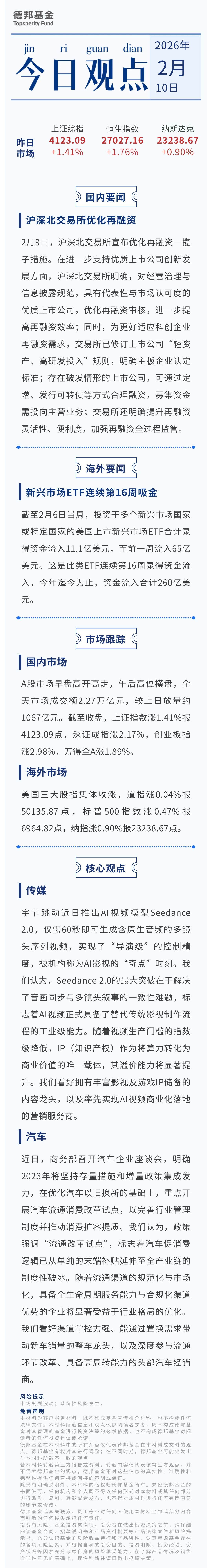 2月10日财经速递,带您最快跟踪板块表现和市场资讯!