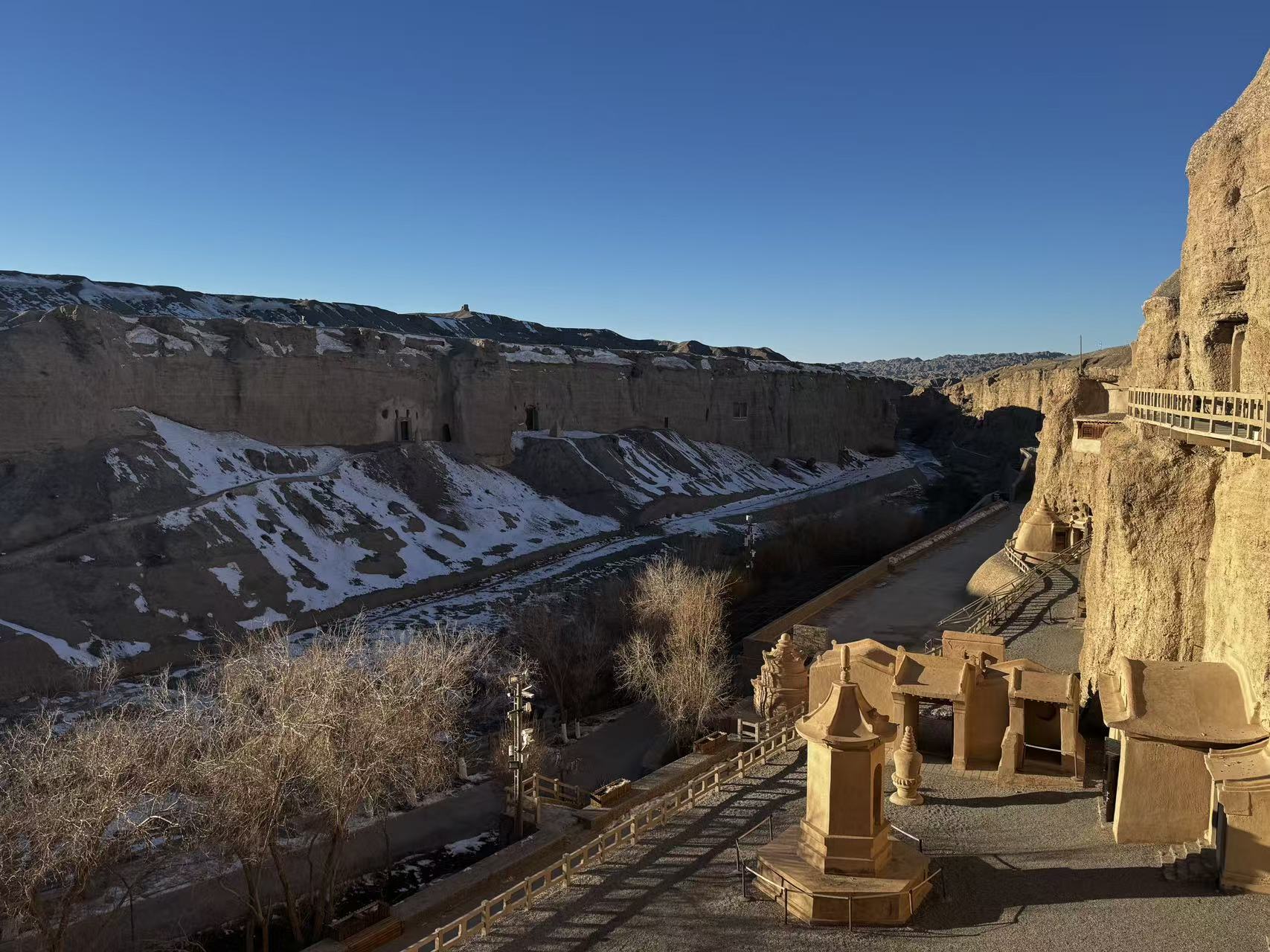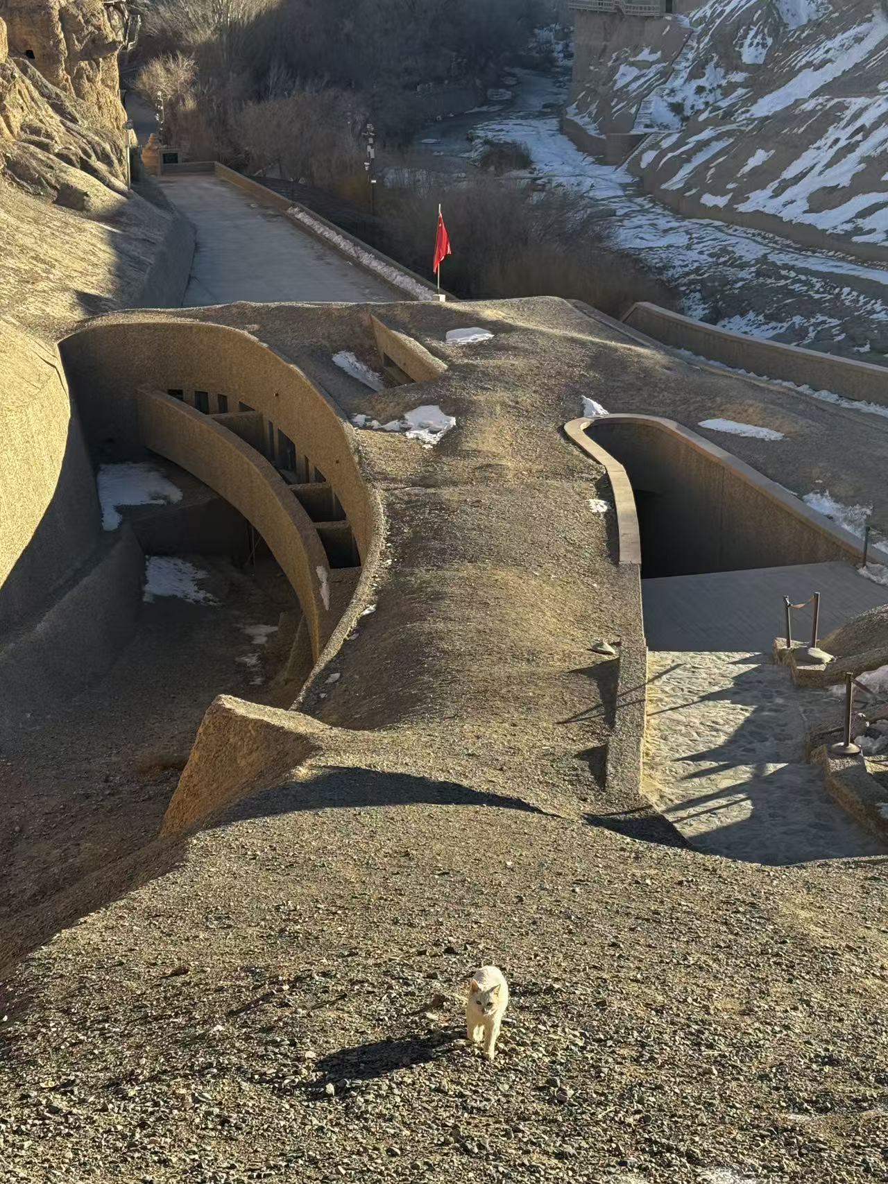 去往榆林窟路和多年前比起来,几乎没有变化,路过锁阳镇的转盘道,路过破城子,路边是小片的庄稼、水渠和蓄水的池塘……是不是这里的时光在每一个冬季都是凝固的呢?至少,对于只能匆匆而过的我,看到的也只能是同一幅面孔吧!(下次争取换个季节)