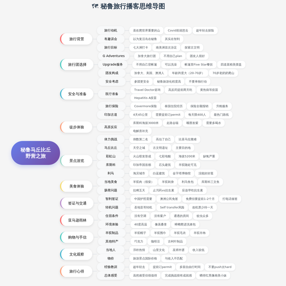这一期,我们还聊了很多实用的旅行Tips:从Travel Doctor的准备、高反药的正确吃法、旅行保险的重要性,到如何选择靠谱的旅行团、印加古道的permit预订、转机时的签证陷阱。