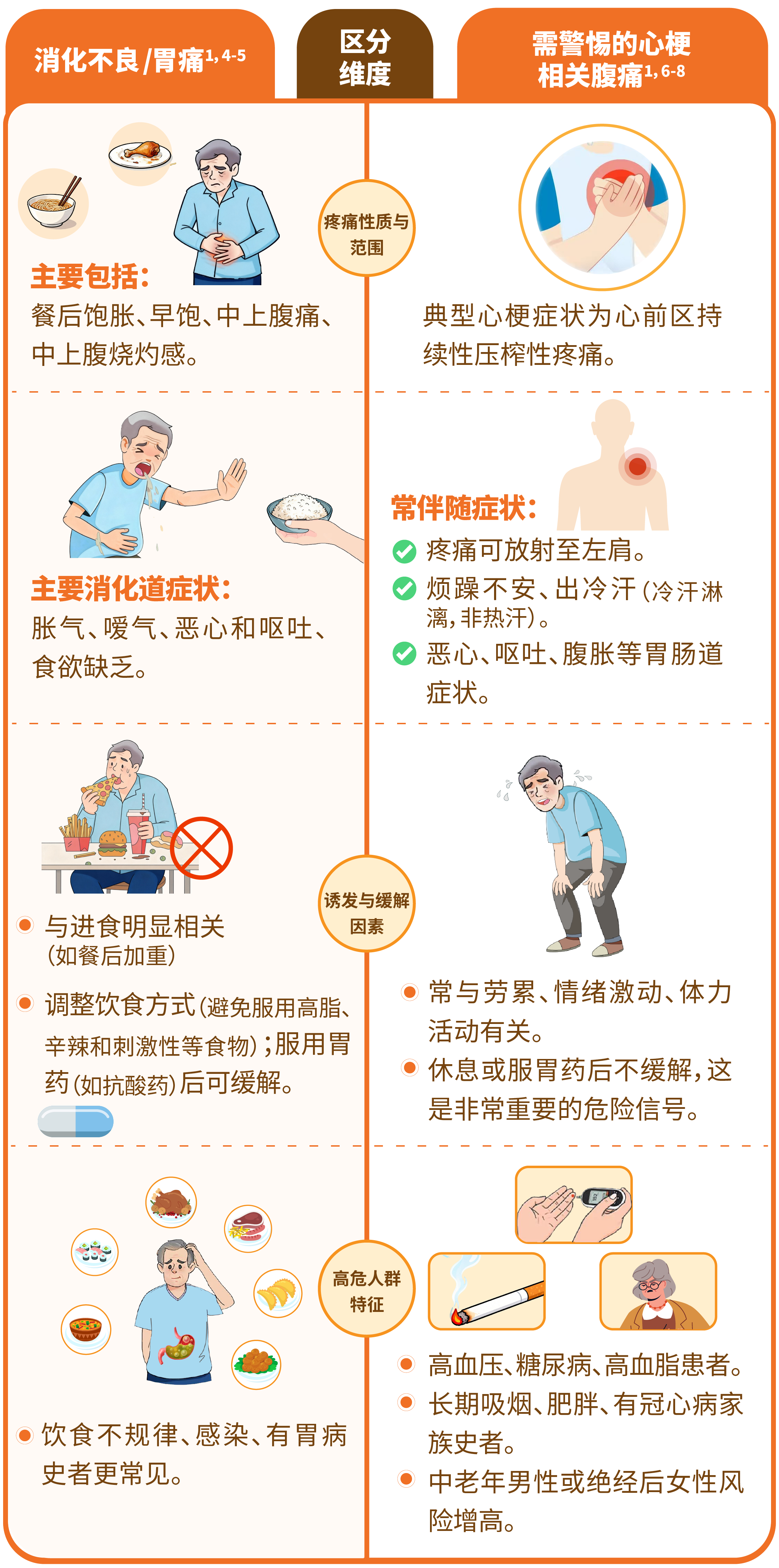 如何区分消化不良/胃痛和心梗相关腹痛?