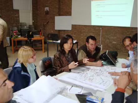 (照片来源:周咏梅)2010年5月22日在阿富汗巴米扬出差,与地方政府研讨阻碍公共服务提高的体制因素