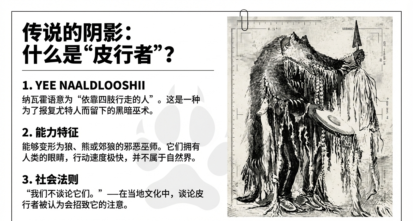 - 03:54 什么是“皮行者”(Skinwalker)?纳瓦霍传说中的堕落巫师与变形诅咒。