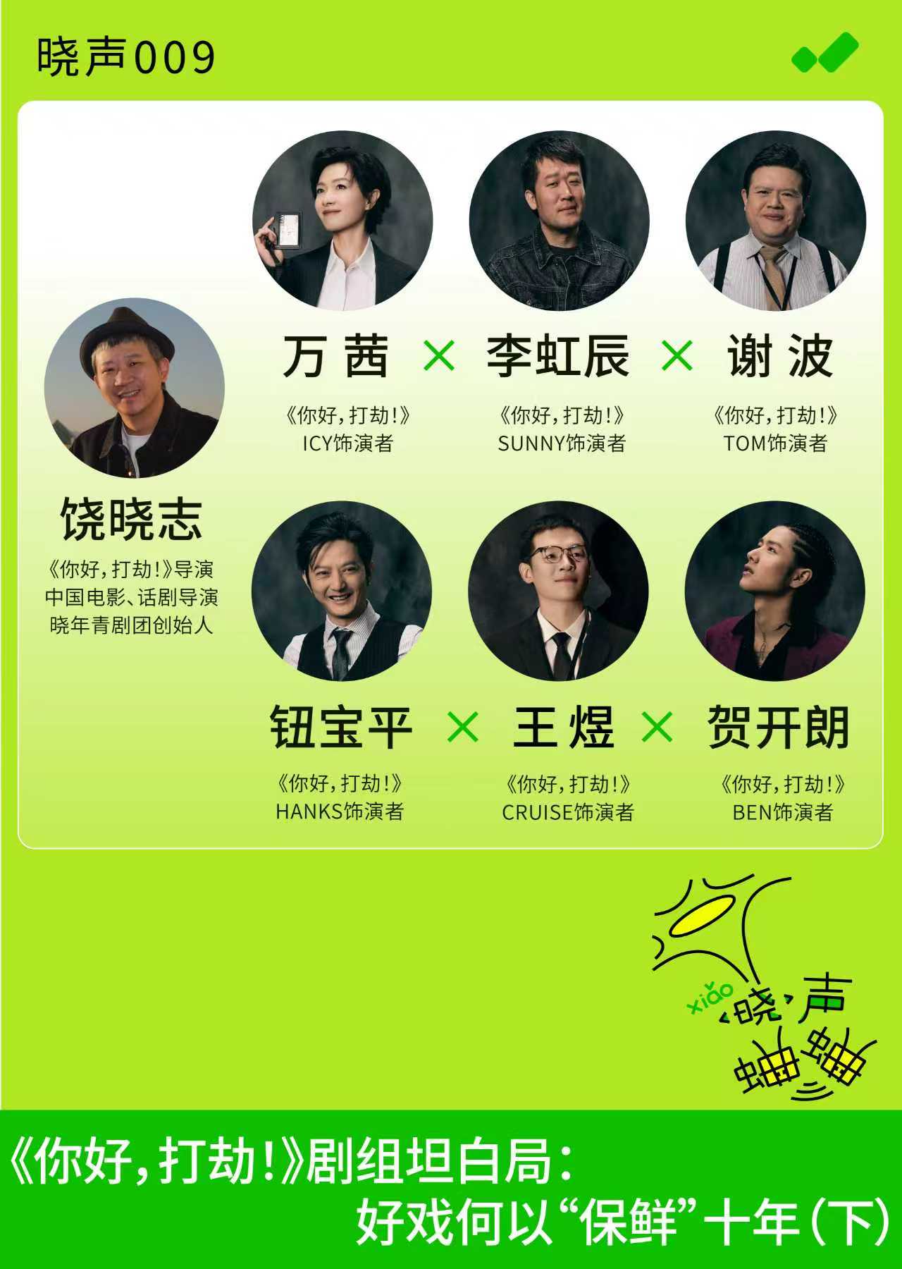 「晓声蛐蛐」是一档由饶晓志导演创立的晓年青剧团所打造的播客节目。舞台前后,片场内外,生活满是戏剧。轻松交谈,让灵魂碰撞,在电波中相遇。如果你也有好奇,一起「晓声蛐蛐」吧!