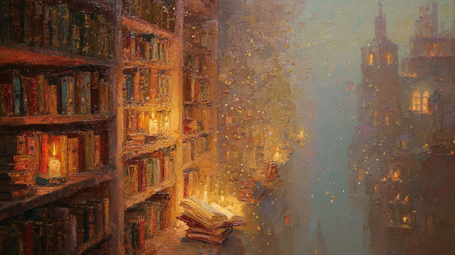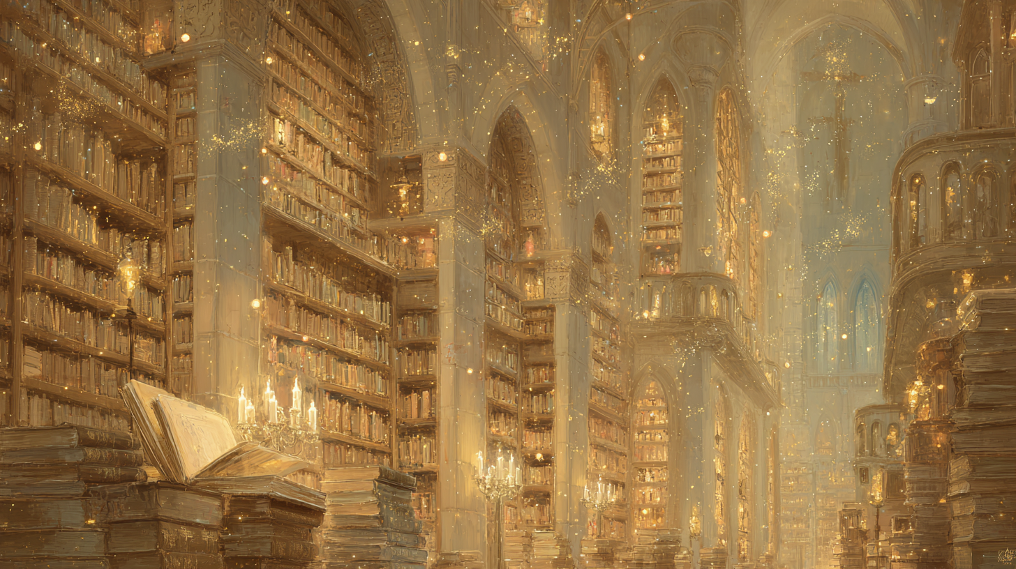 城堡内书架高耸入云,