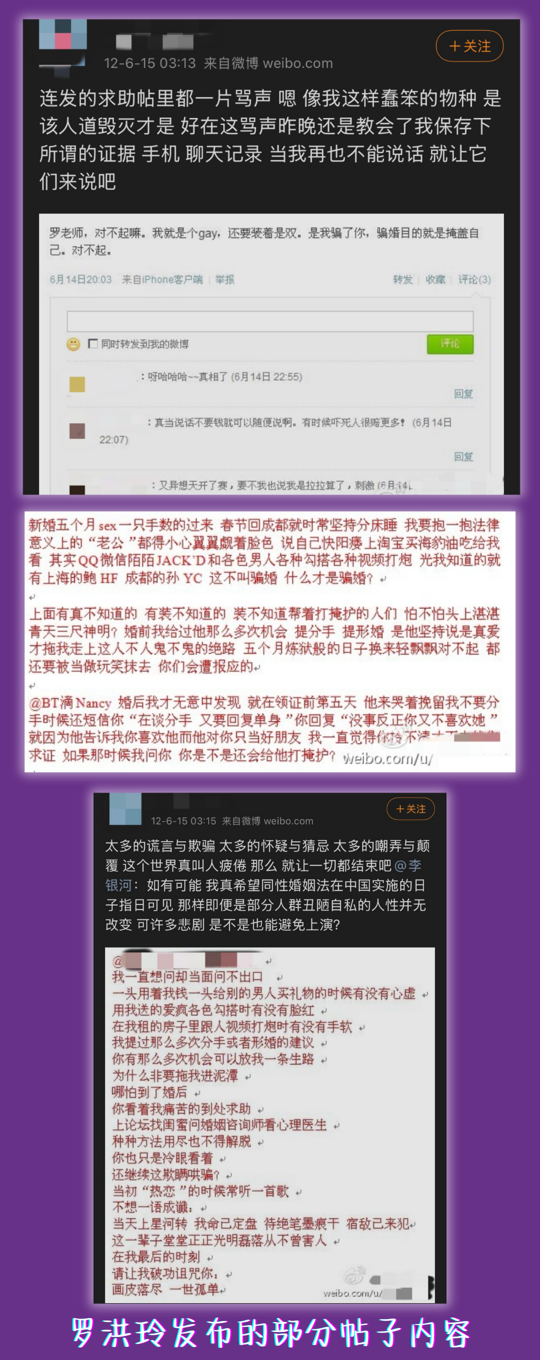 |罗洪玲生前微博部分内容、罗洪玲与程建生往来短信内容等。