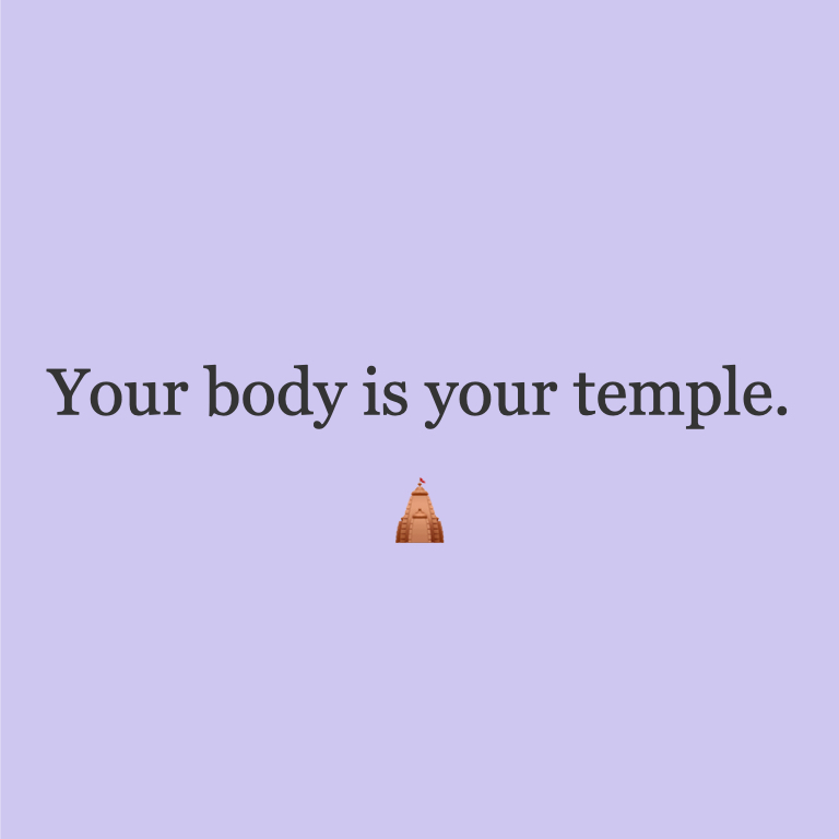 your body is your temple,你的身体就是你灵魂的庙宇,希望大家不仅仅是养生、健身,而是打心底里守护它、敬重它,带着你最虔诚的信仰,那么你信念的落地会更加事半功倍。