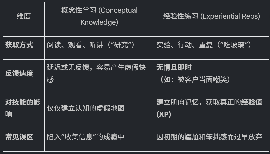 - 强行进行高频重复: 即使最初的 5 小时你像个白痴,也要继续。技能是失败的产物,每一次尴尬都是 +1 XP。
