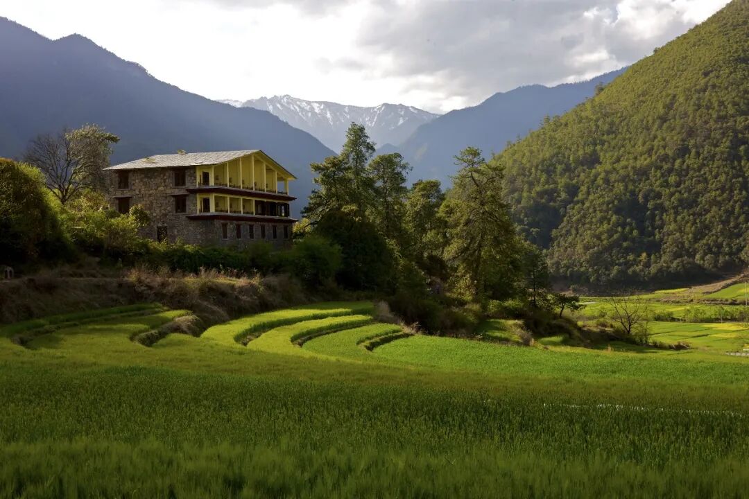 ▲松赞塔城酒店景观稻田