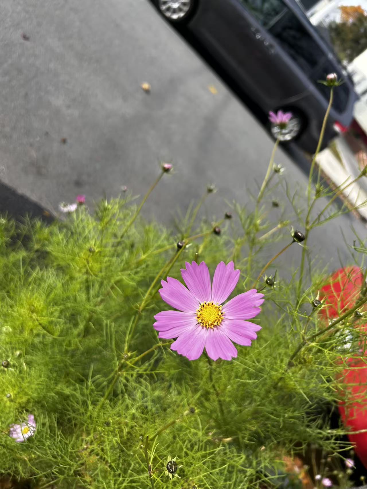 我每天上班去地铁的路上有一簇小花,它的那个花瓣就是这样张开的。然后它的那个花瓣特别的纤薄,但是它就是一直开着,基本上我每天走路,然后就开始去找它,看它还开不开,然后它暴雨之后还开着,狂风之后还开着,都快下了第一场雪了,基本上还在开。从8月底开到了11月底,我就一直很好奇这个东西它是什么,它怎么一直开着。它好像是一种菊花,它就像一个羽毛一样,但是你想,你每天走过的时候,都能看到那个羽毛,它还停在那个地上,我就觉得Amazing。@紫璐