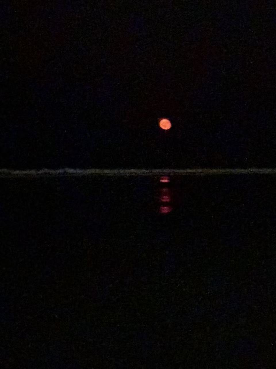 今年看了很多月亮。这是临时起意去陌生海边看到的血红色的月亮。很赤诚的孤独,挺漂亮的。@钰婷