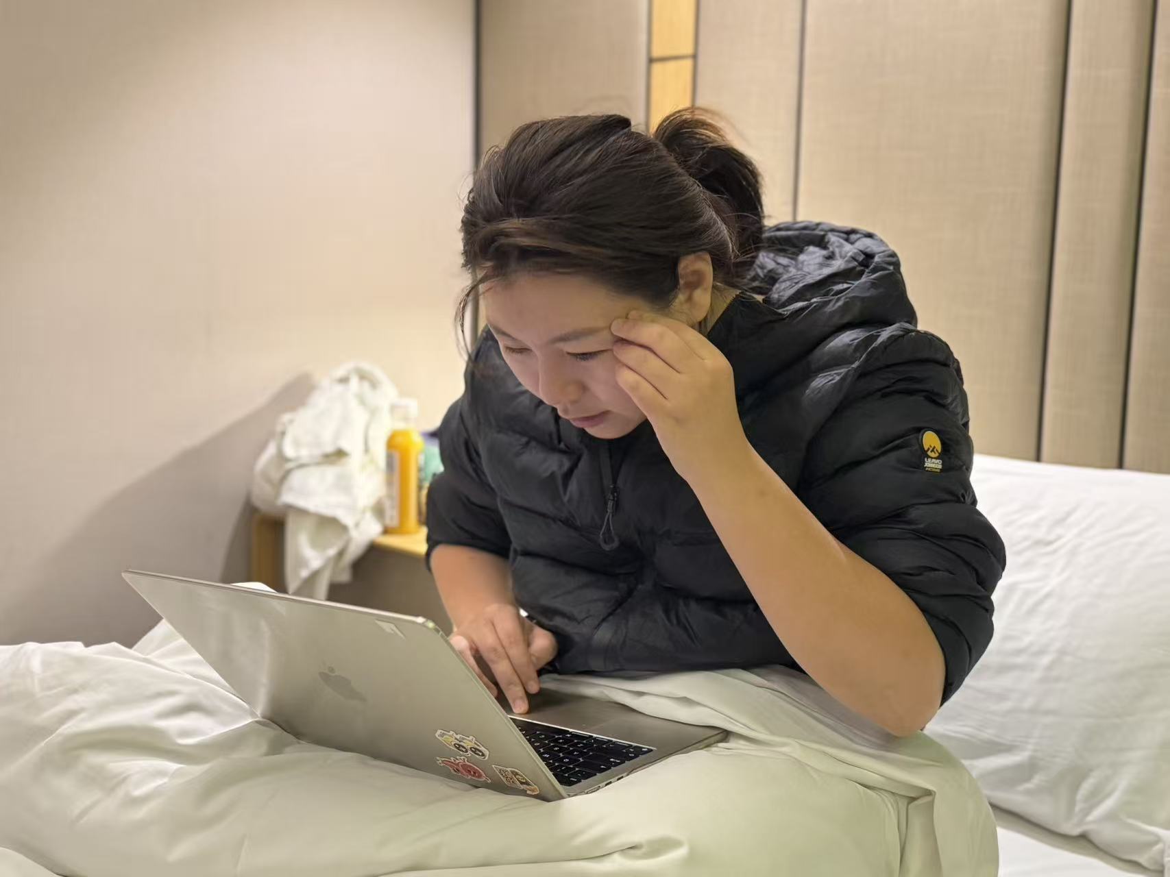 婚礼前一晚的深夜,在经历了剧烈头痛和呕吐后,依旧在对流程和写发言稿的新娘子。@伊婷