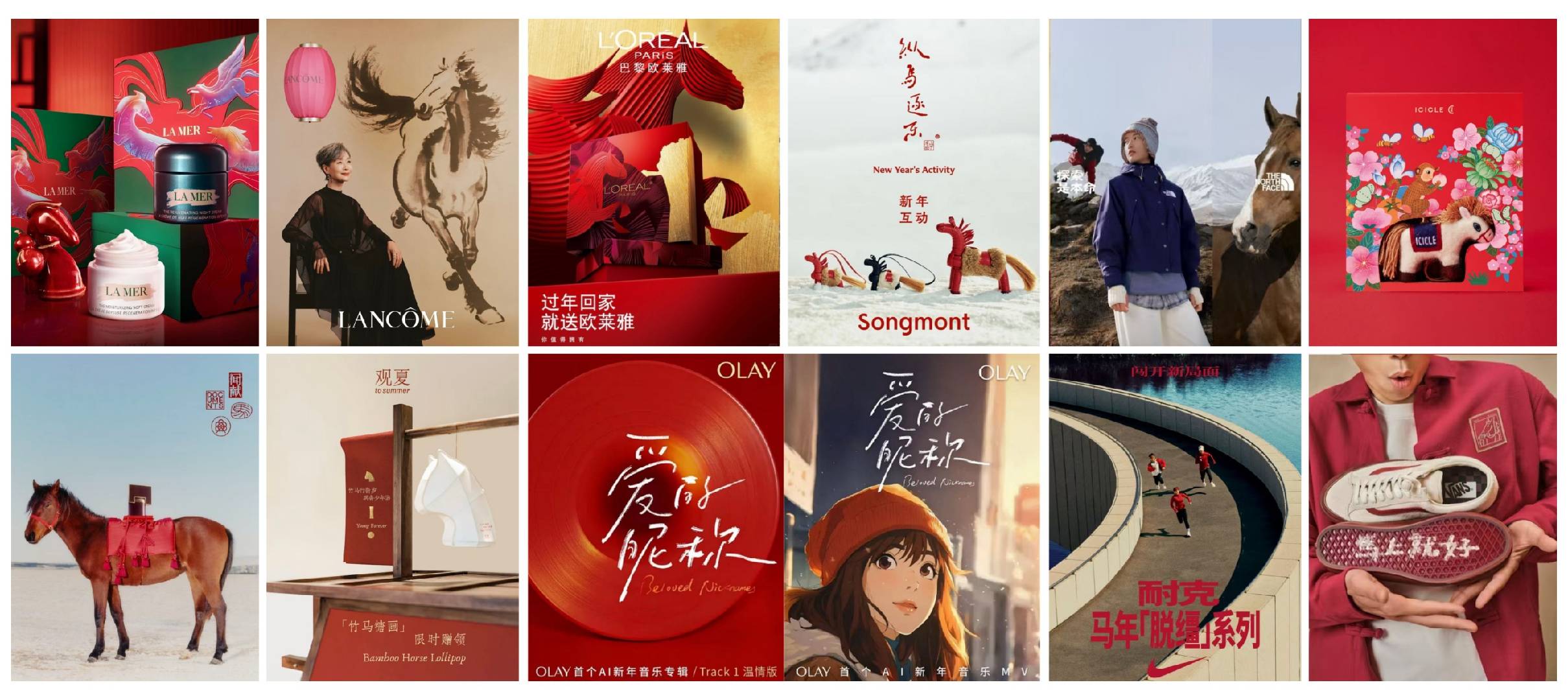 在这样一个开放的试卷上,我们已经观察到观夏、闻献、Vans、海蓝之谜、Nike、北面、Olay、之禾、伊利、蒙牛....一系列品牌的春节企划出街,并将在下个月的除夕初一到来之前看到更多的品牌新春创意。