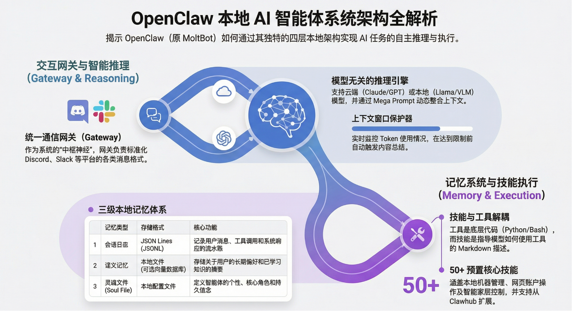 揭示OpenClaw的推理层如何作为决策大脑。它是一个模型无关的编排引擎,通过“巨型提示词工具”动态组合指令和记忆,并利用“上下文窗口护栏”机制智能管理token使用。