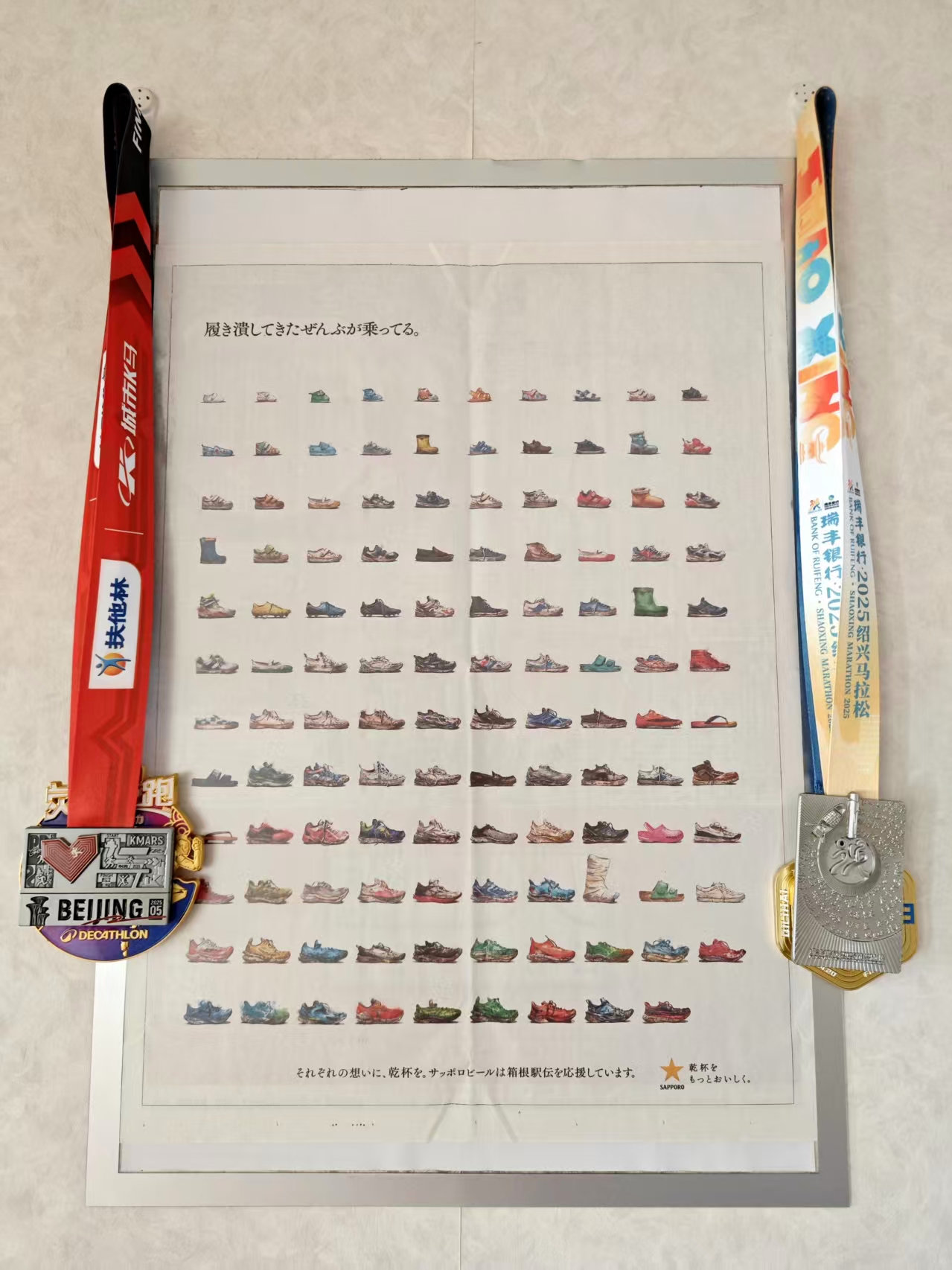 赞助商札幌啤酒刊登的伴随成长的跑鞋海报