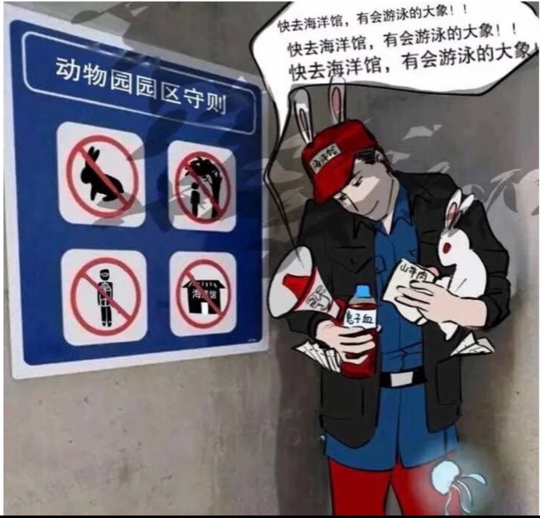 3.兔子会吃掉猿猴(这句话被划去,并在猿猴一词上圈记了问号),在猿猴园区不能和工作人员说话,不能出去,不能投喂猿猴,不能在只有一条路时进入