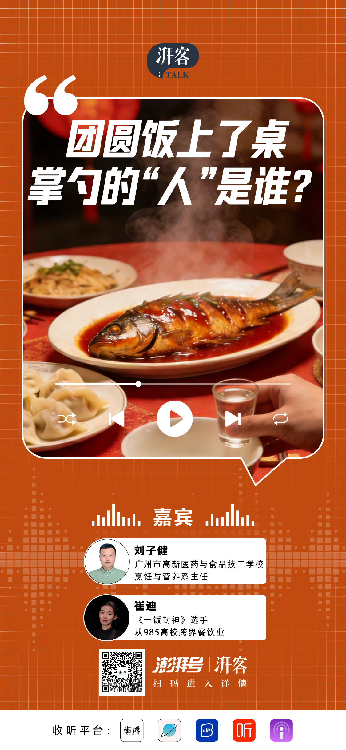 锅已热,油正温。当机器学会颠勺,我们如何看待“吃”这件事?本期《湃客Talk》邀请《一饭封神》选手、从985高校毕业的年轻主厨崔迪,以及广州市高新医药与食品技工学校烹饪与营养系主任刘子健,共同加入这场关于机器、烟火与未来餐桌的对话。
