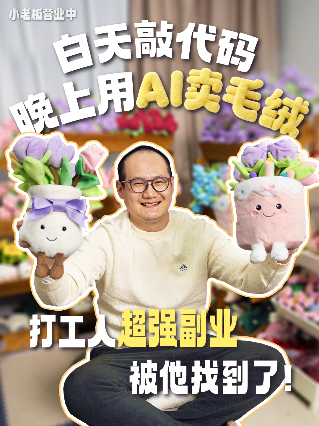 本期嘉宾,92年的Walter,硅谷回来的程序员,在大厂写了8年代码。去年9月,他用AI给自己设计了一盆毛绒铜钱草,发小红书本意是自娱自乐,结果有人追着问“哪儿买”。五个月后,他成功把毛绒盆栽副业落地,月流水30万,用户70%买来送人。
