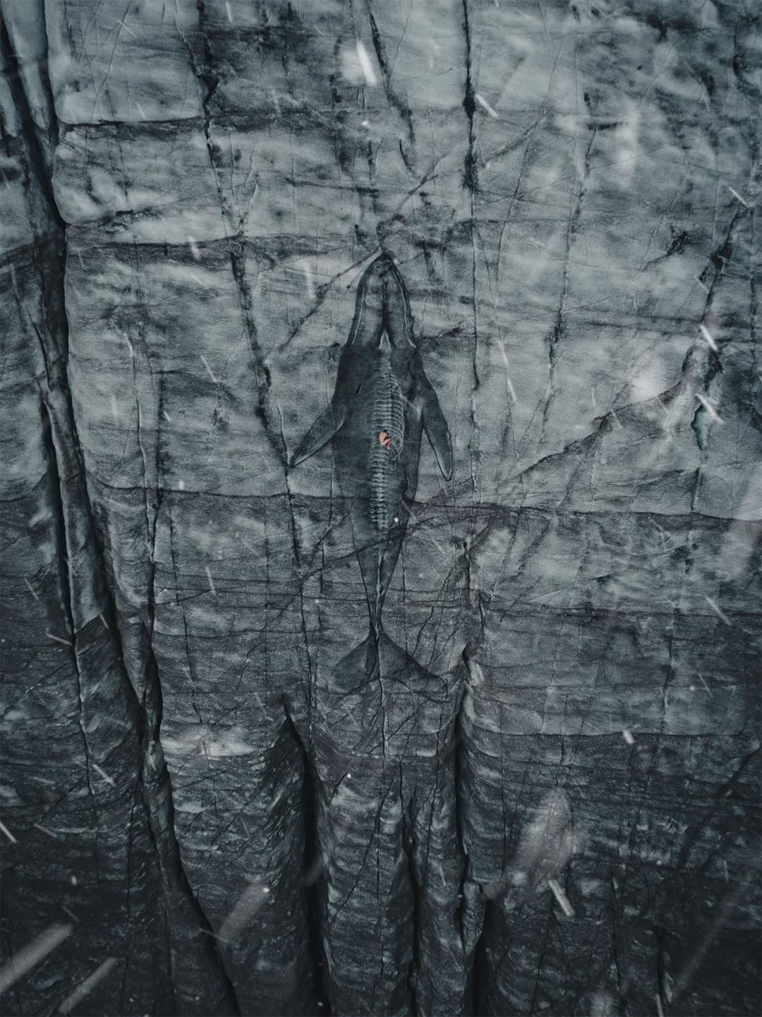 从摄影教学的视角下品读,David Popa的创作,是一场关于场景叙事、光影捕捉与瞬间美学的极致实践。他的作品从不刻意追求永恒,反而以短暂性为核心魅力,波罗的海浮冰上的肖像、挪威冰川裂缝里的图腾、冰岛熔岩上的身影,或许只需几场雨水、一次潮汐、一场暴风雪,便会彻底消融,重新归于自然。挪威群岛的海水上涨,曾冲走画作中巨蝶的半边翅膀,可在他眼中,这种短暂性恰恰是作品意义的核心,因为人生本就无常,朝生暮死的艺术,正呼应着生命与存在的本质,在瞬息万变中照见生命的脆弱与珍贵。
