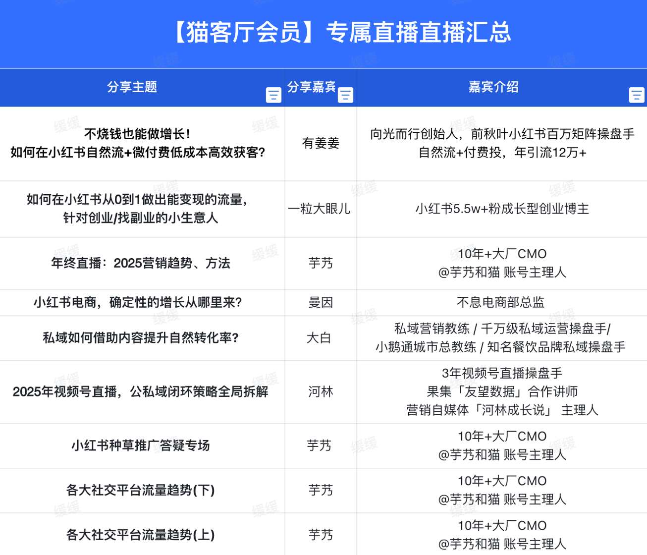猫客厅会员的线上知识库,就沉淀了多期一线业务操盘手的直播分享,很推荐大家趁着小长假学习一下: