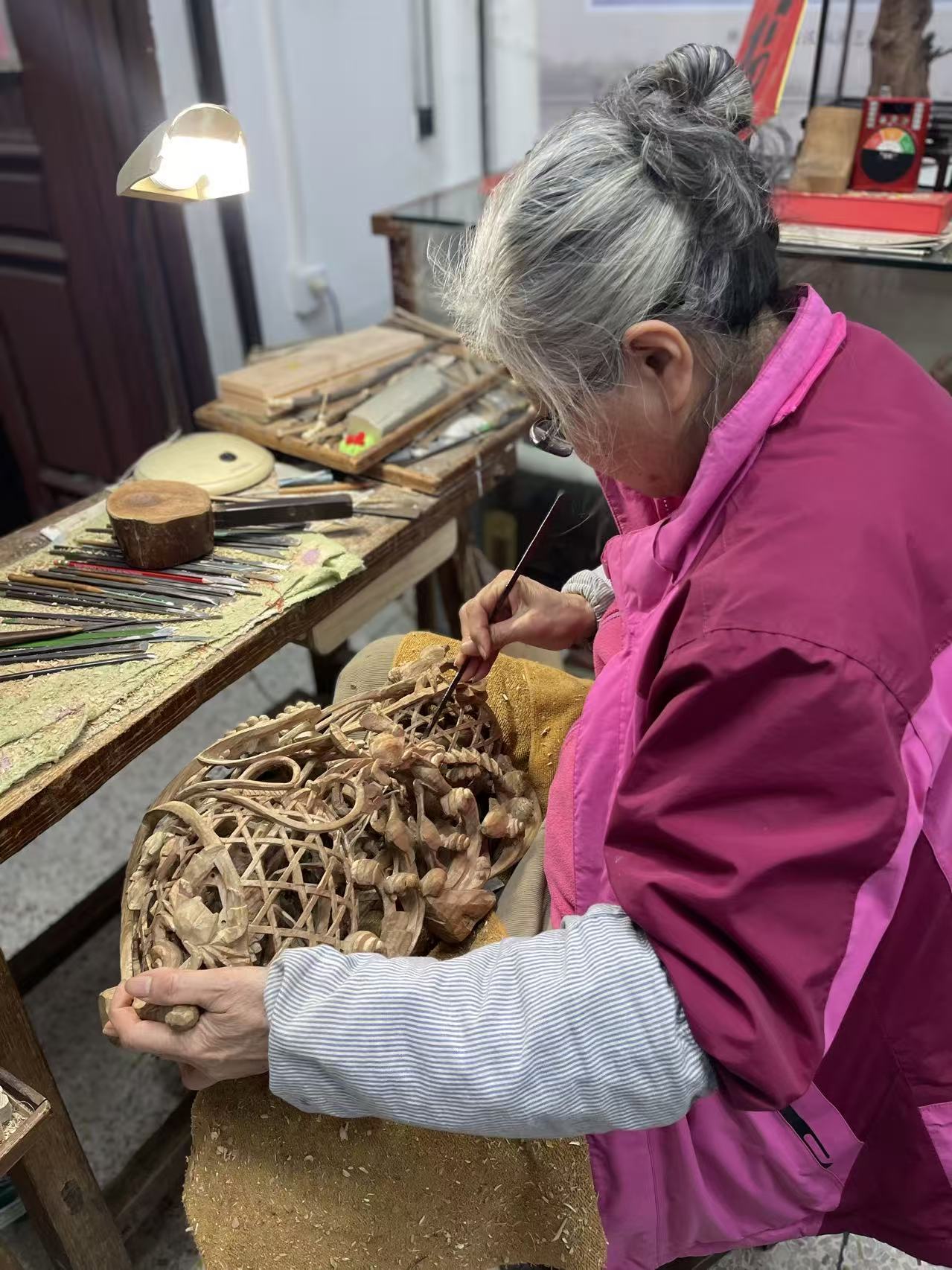 婆婆手中的虾蟹篓: