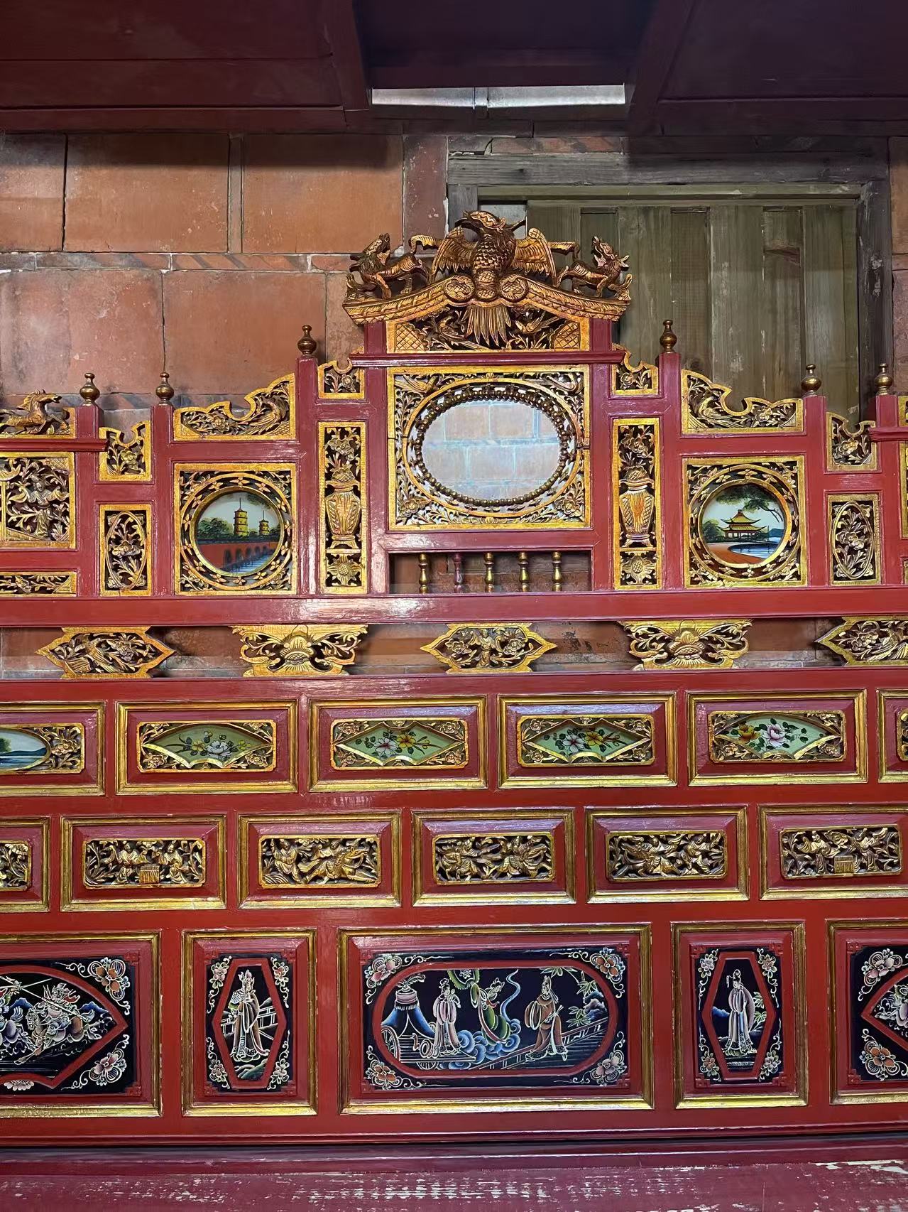 老房子的精美木雕床: