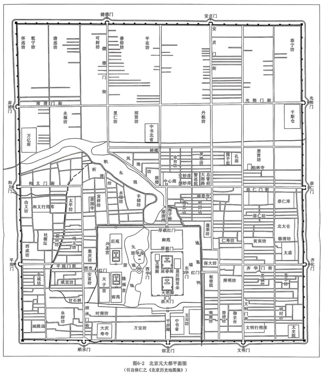 北京元大都平面图(侯仁之《北京历史地图集》)