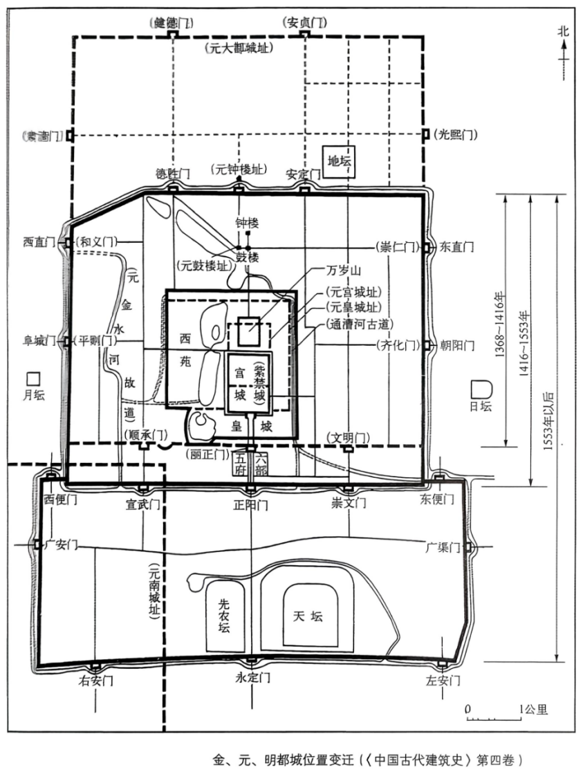 元明两代北京城发展示意图(《中国古代建筑史》)