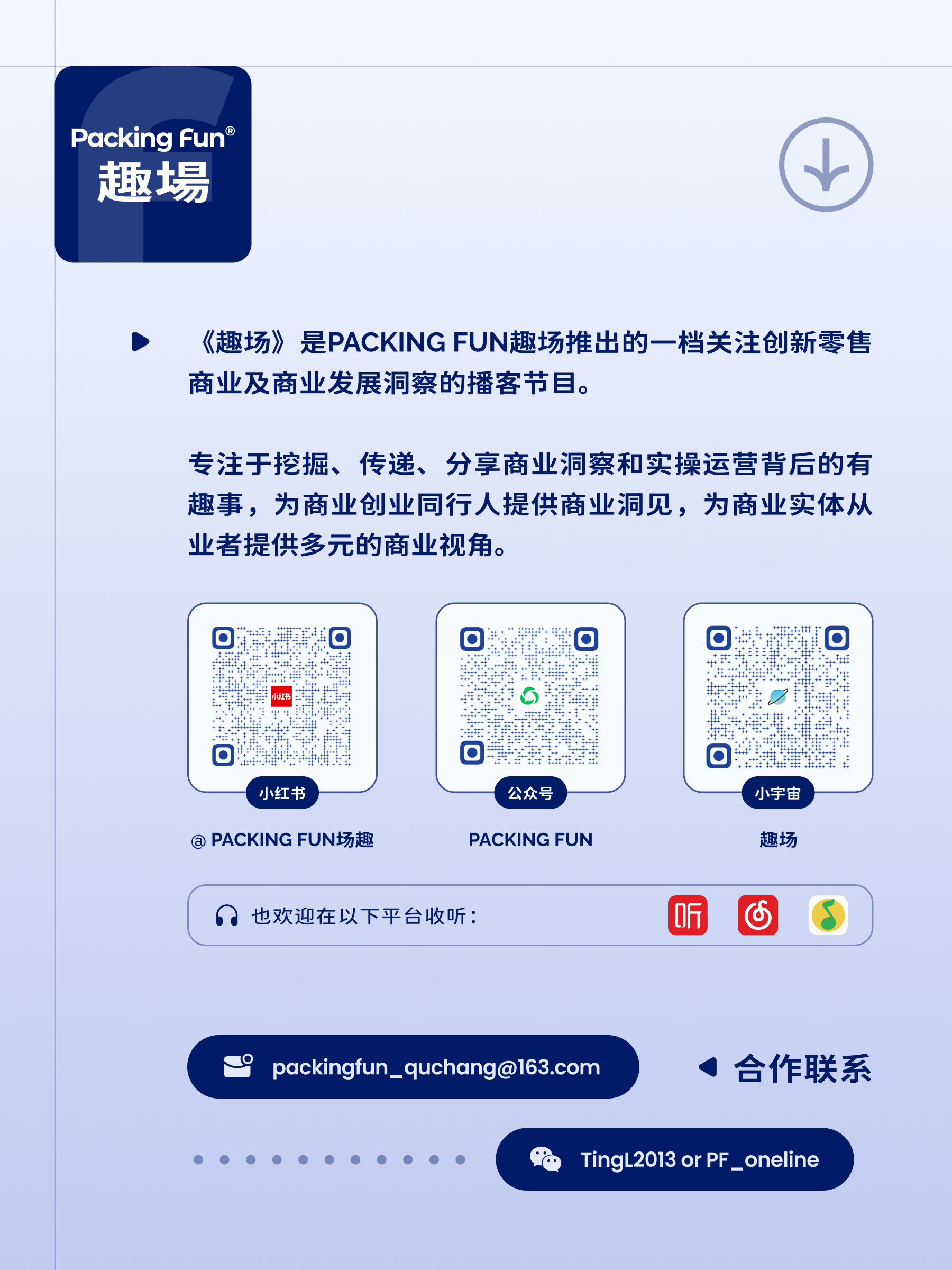 《趣场》是PACKING FUN趣场推出的一档关注创新零售商业及商业发展洞察的播客节目
