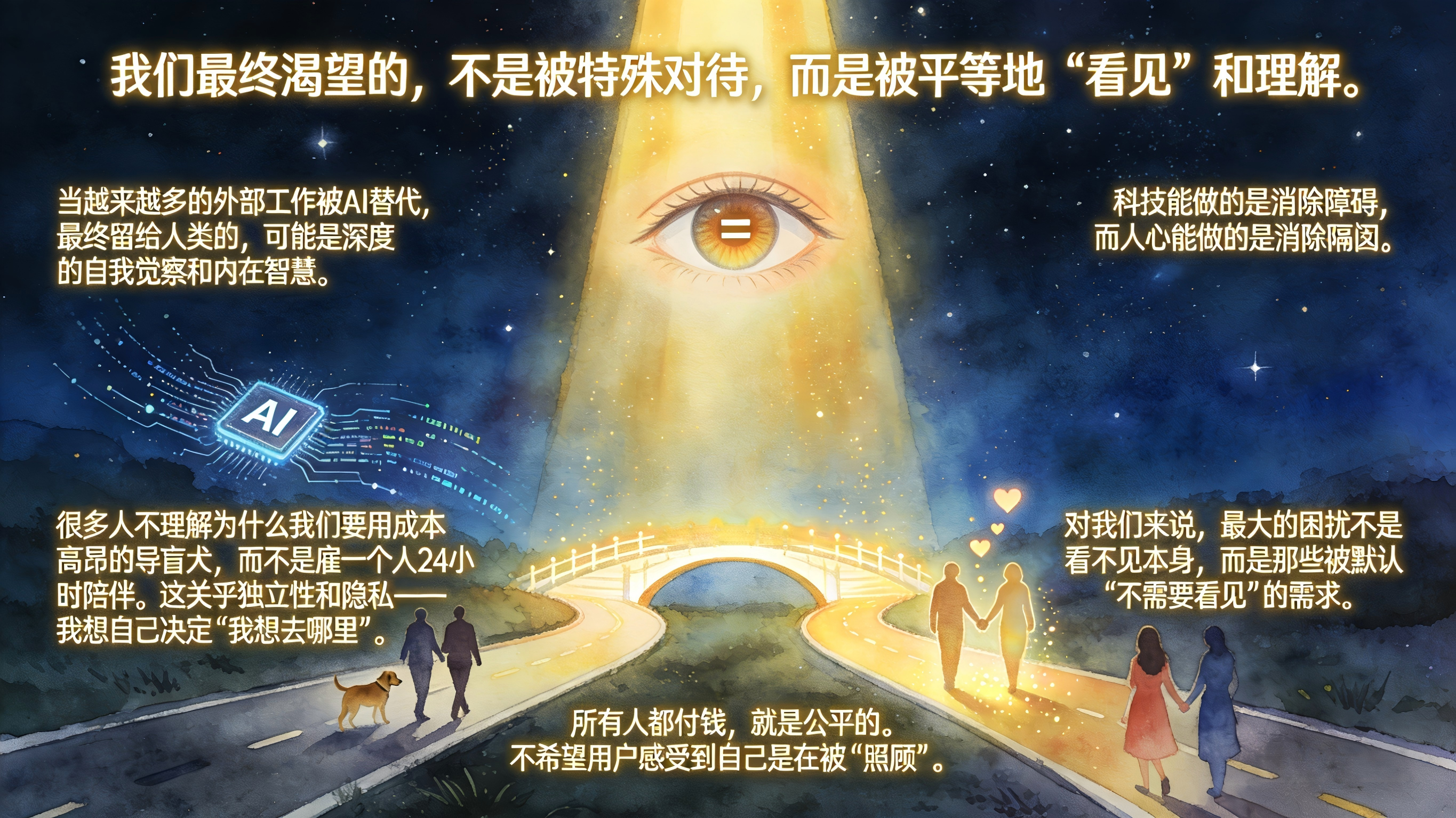 - “对我们来说,最大的困扰不是看不见本身,而是那些被默认‘不需要看见’的需求。”