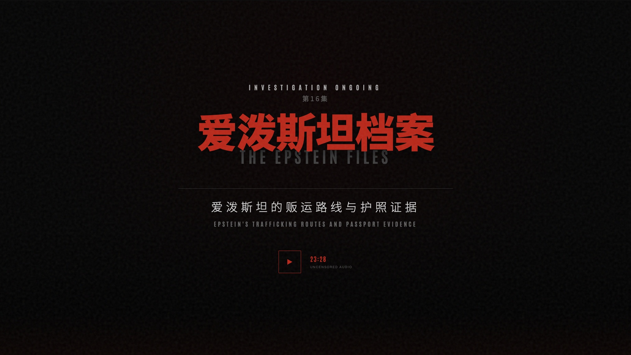 《爱泼斯坦档案》是一个人工智能生成的播客,分析根据《爱泼斯坦档案透明法案》 (EFTA) 发布的 350 万个页面,对杰弗里·爱泼斯坦案件的深入调查。这档爱泼斯坦播客探讨了证据、网络以及未解之谜,涵盖了几十期节目,内容基于司法部发布、法院文件和经核实报道的第一手资料。