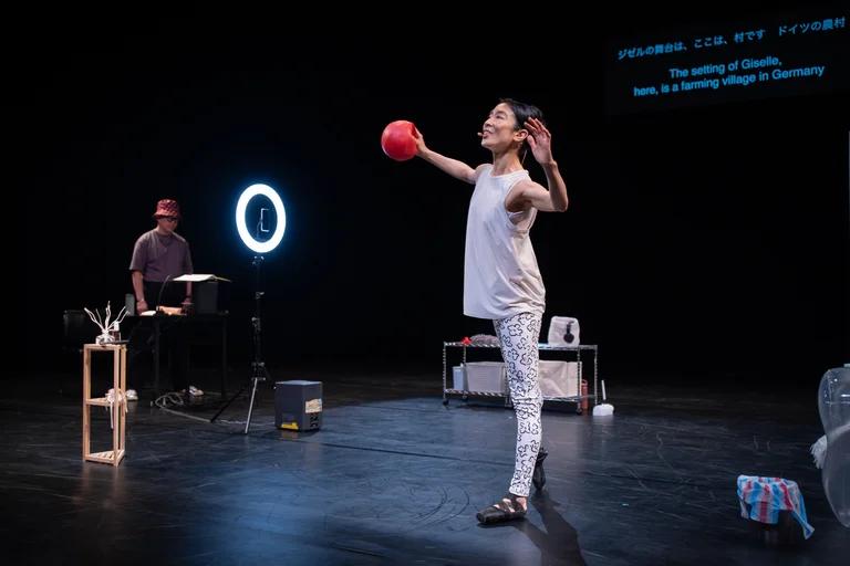 著名戏剧导演兼作家冈田利规与前首席芭蕾舞演员坂井花菜合作,探索日本古典芭蕾的世界。坂井在一场 YouTube 研讨式讲座中讲述浪漫主义芭蕾杰作《吉赛尔》的故事。她曾无数次饰演《吉赛尔》的主角,如今却以独演者的身份再次与这一角色相遇。她以含蓄的幽默,既呈现出自己对该角色的熟稔,也透露出在职业生涯中逐渐与之拉开的距离。上一刻,她还能完成一段完美的旋转;下一刻,她又戏仿起 YouTube 上英语会话课程的广告。现实与虚构之间的边界变得可渗透,为观众打开了一个愈发复杂、令人着迷的世界。